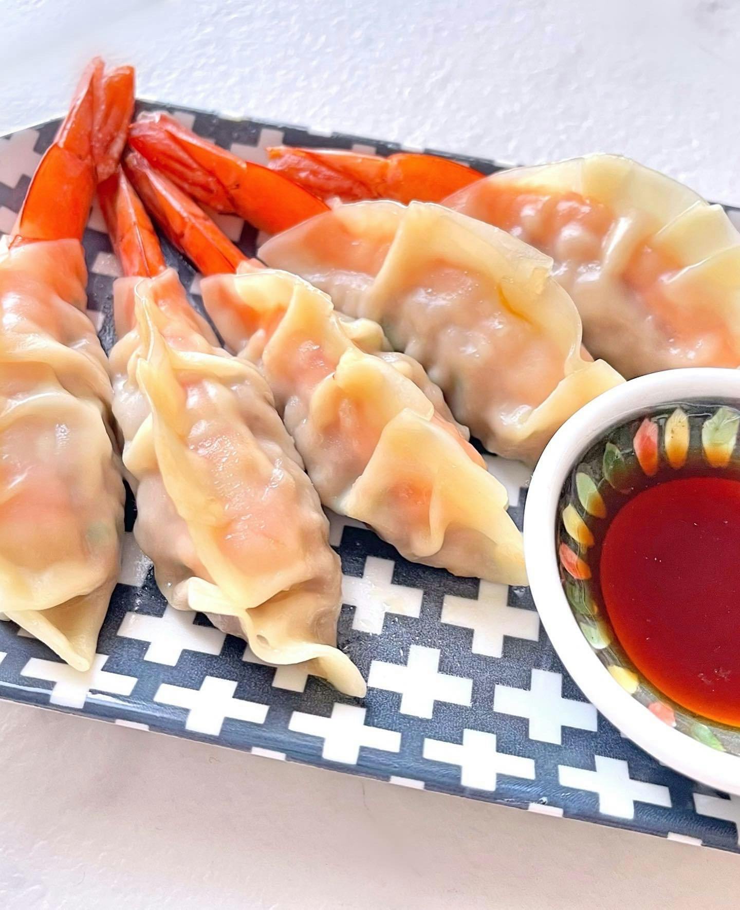 ❁海老餃子(レシピあります) ❁いくらおにぎり ❁蓮根とごぼうの金平 ❁ワカメと豆腐の味噌汁 ❁苺ババロア ❁キウイ スーパーで海老が安かったので 海老餃子にしてみました🦐💕 欲張って大振りの海老を使ったけど包むと パンパンになったので小振りの方が作りやすいかも😊 大振りでもボリューム出るので満足感◎そこはお好みで♡ 簡単なので良かったら参考にしてみて下さいね🌱
