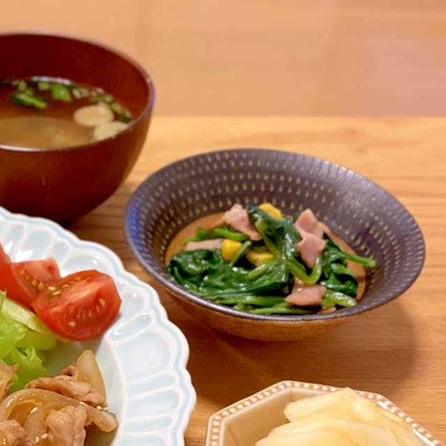 ほうれん草とベーコンのバター醤油炒め