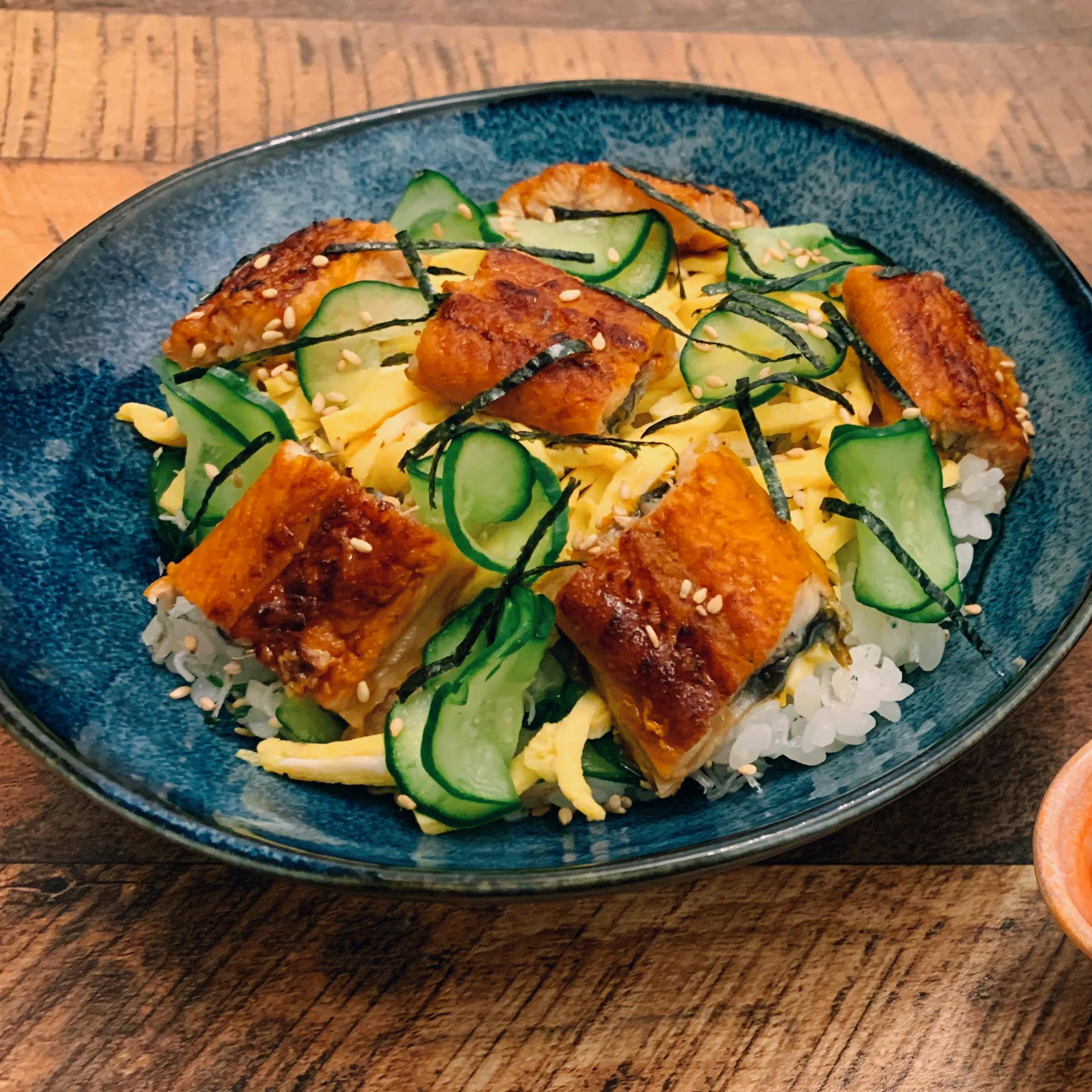 土用丑の日はうなぎでちらし寿司に。 せっかくのうなぎ、美味しく調理したいよなと、色々調べてみたら、うなぎについているたれをお湯で落とすといいらしい。 お湯で落としてから蒸したら、魚臭さがなくて、ふっくらおいしかった☺️