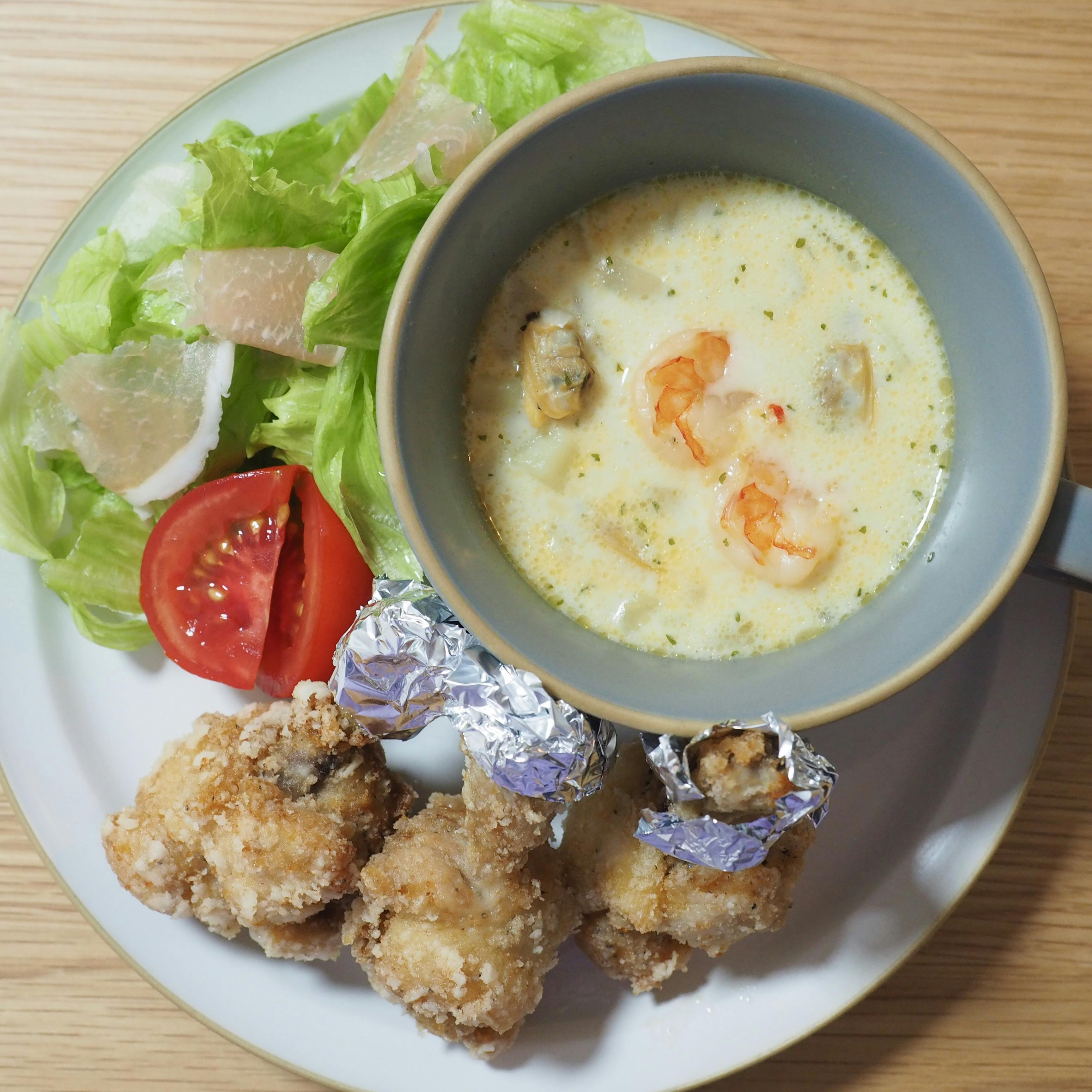 サラダと揚げなす