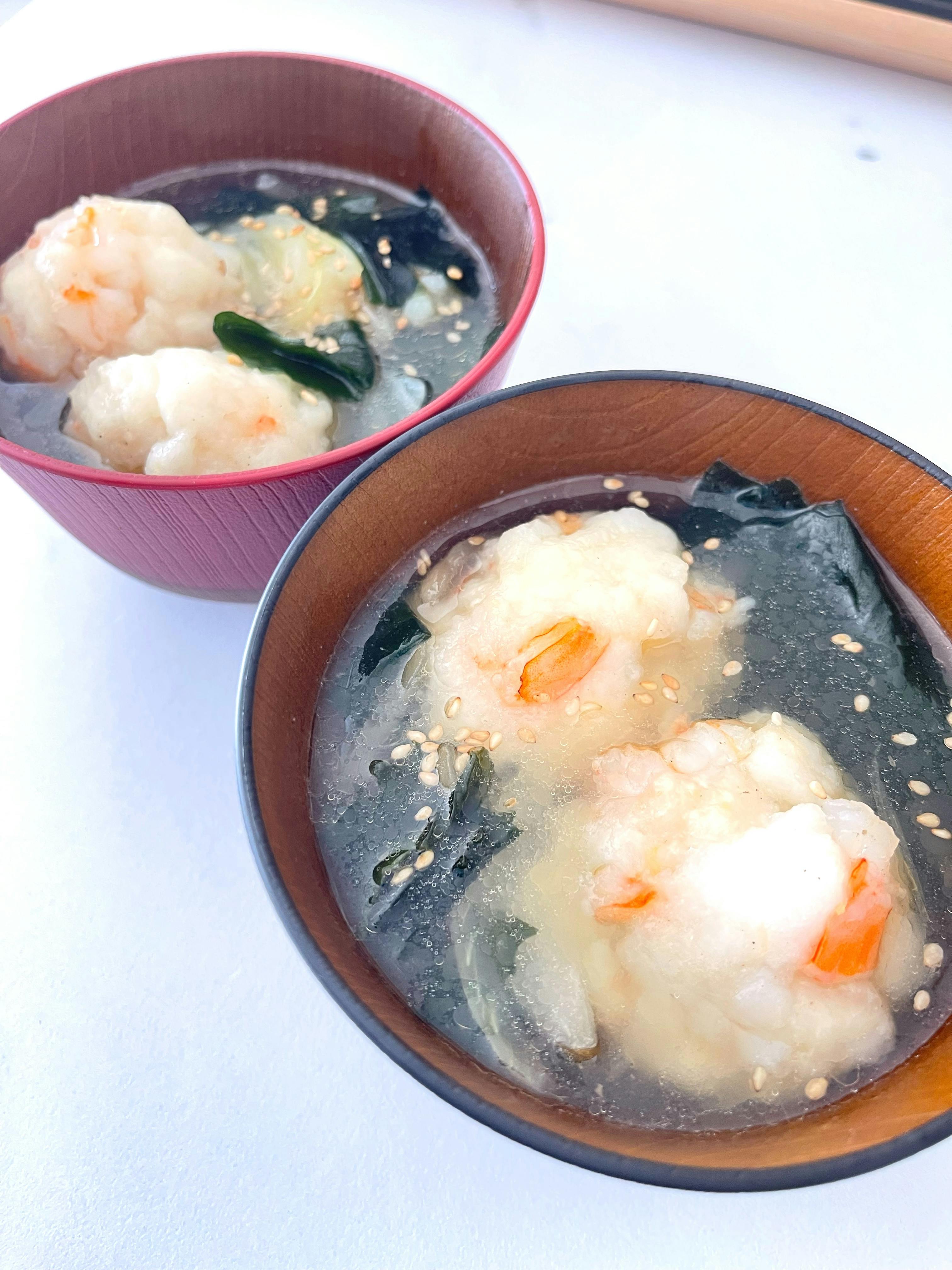 ❁厚揚げの肉巻き ❁茶碗蒸し ❁海老団子の中華スープ ❁冷やしぜんざい ❁明太子ご飯 メインは厚揚げの肉巻きです🍖1つでもボリュームあるおかずなので育ち盛りの主人も大満足🕺笑 海老団子の中華スープははんぺんと細かく切った海老を片栗粉で丸めて鶏ガラスープとわかめで煮込んでます😋 ふわふわで美味しい💕 最近、和菓子が好きで白玉のストック作りがち🍡冷凍で1週間くらいは持つのでおやつTimeにお団子にしたりぜんざいにしたり✨