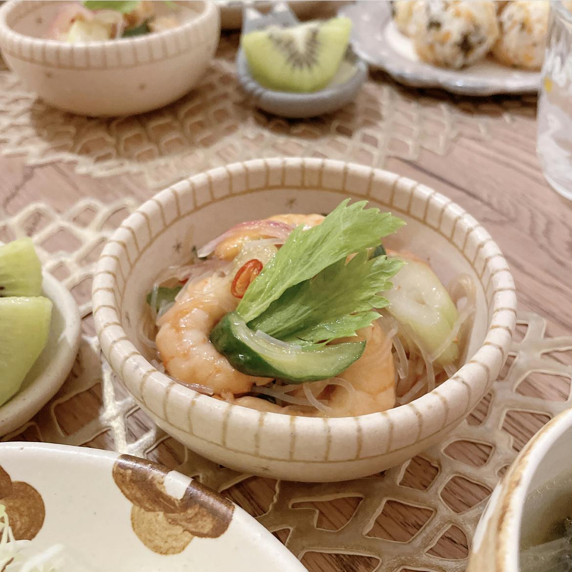 韓国とタイの組み合わせ 🇰🇷 🇹🇭 チュモッパ美味しすぎました ♡ ヤムウンセン風は苦手なパクチー、ナンプラーは無しです。