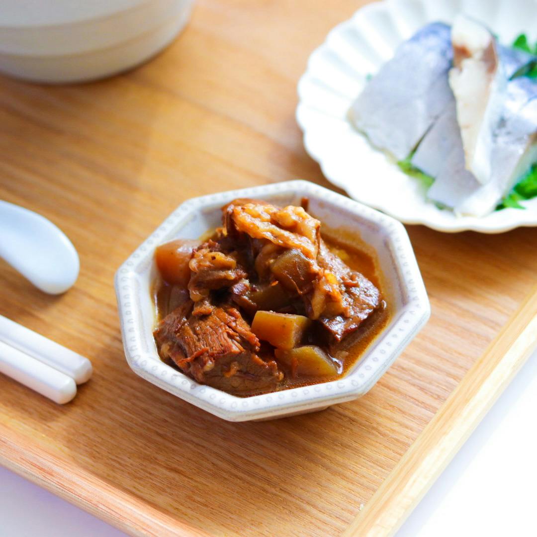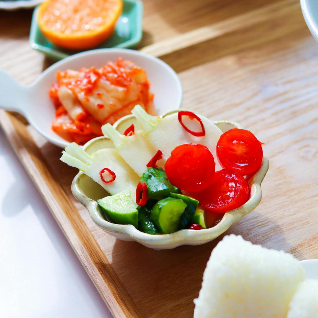 ꕤ 塩ラーメン風オカベ麺 ꕤ しめ鯖 ꕤ ピリ辛漬け ꕤ 牛すじどて煮 ꕤ キムチ ꕤ 塩むすび ꕤ フルーツ スープは、 鶏ガラスープの素・塩・にんにく・白ごま・ ごま油 で簡単に作れるので忙しい時にオススメ🤟 簡単なのに、 これが結構美味しくて。 サッポロ一番塩ラーメン超えたか!? って思うけど、 サッポロ一番塩ラーメンはアレはアレで 美味しい🥹💕 🍙は新米を土鍋で炊いて、 熱々のごはんをシンプルな塩むすびに。
