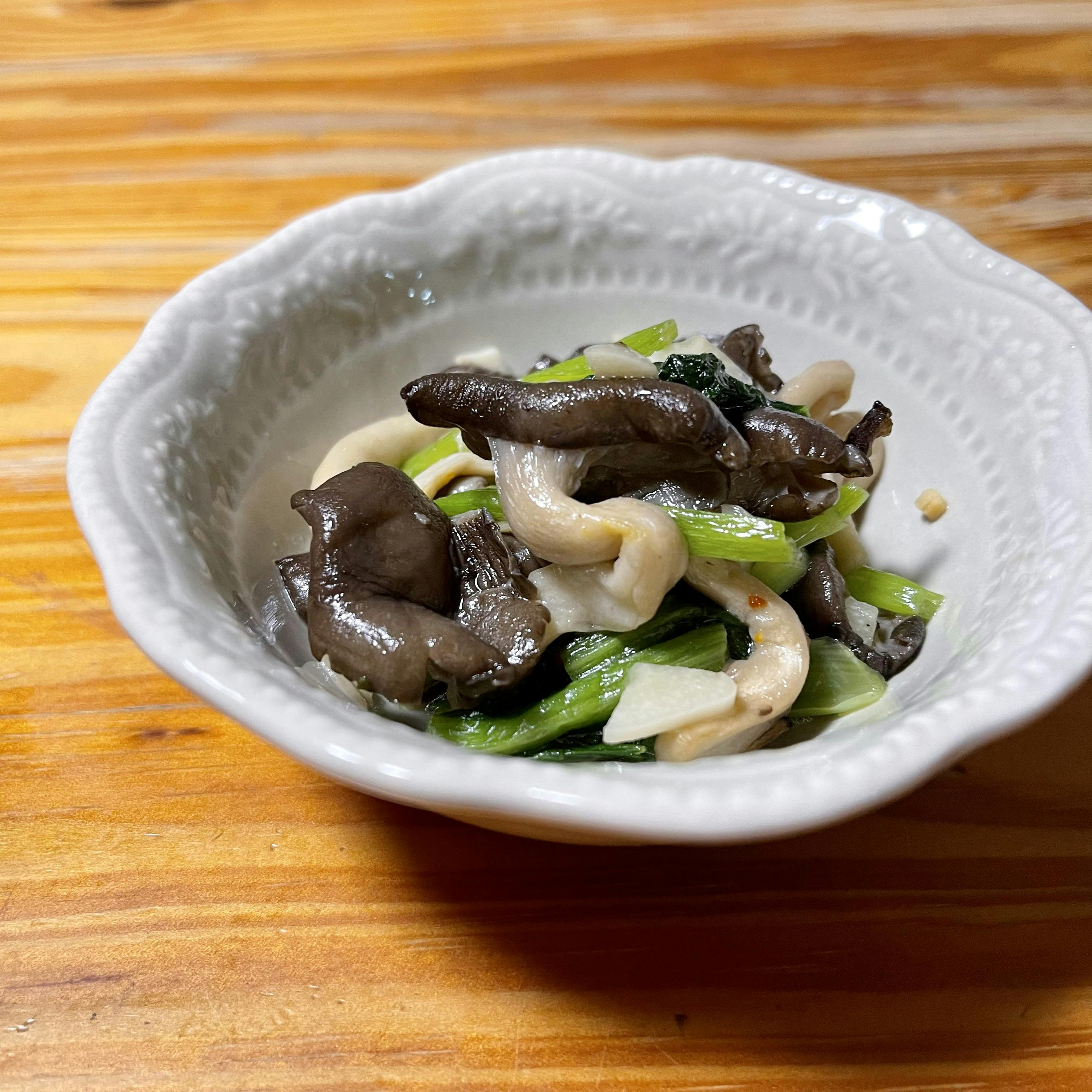 小松菜とひらたけのガーリック炒め