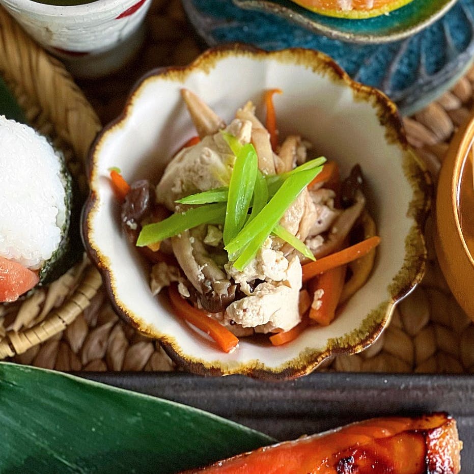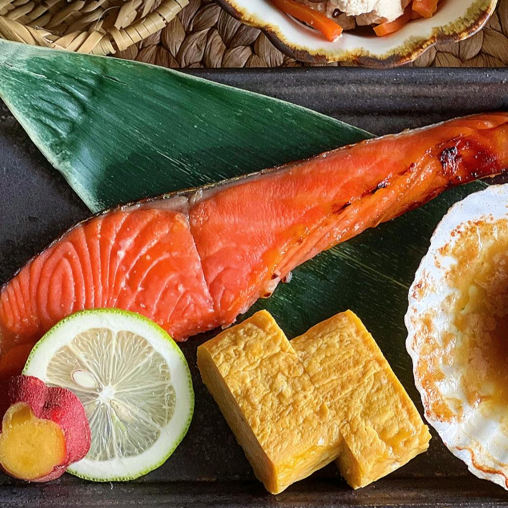 #和定食 風ごはん🍚 ❁︎ 銀鮭の西京焼き ❁︎ 帆立のバター焼き レモン胡椒 ❁︎ 甘い卵焼き ❁︎ さつまいものレモン煮 ❁︎ 炒り豆腐 ❁︎ たらこのおにぎりと さつまいものおにぎり ❁︎ もずくの味噌汁(ズッキーニ、人参、えのき) ❁︎ みかん🍊 朝の鮭はやっぱり間違いないですね。 和食での朝ごはんは心もほっこりします。