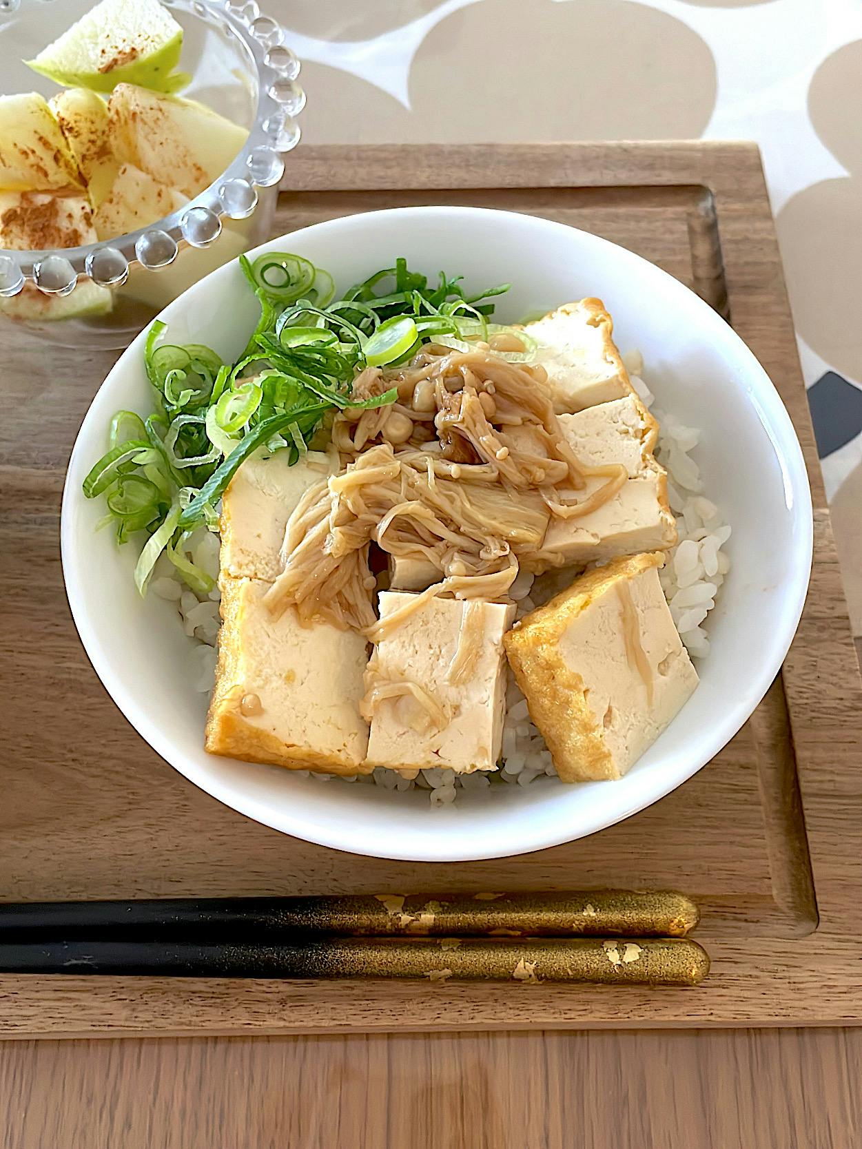 厚揚げとえのきの麺つゆ炒め丼
