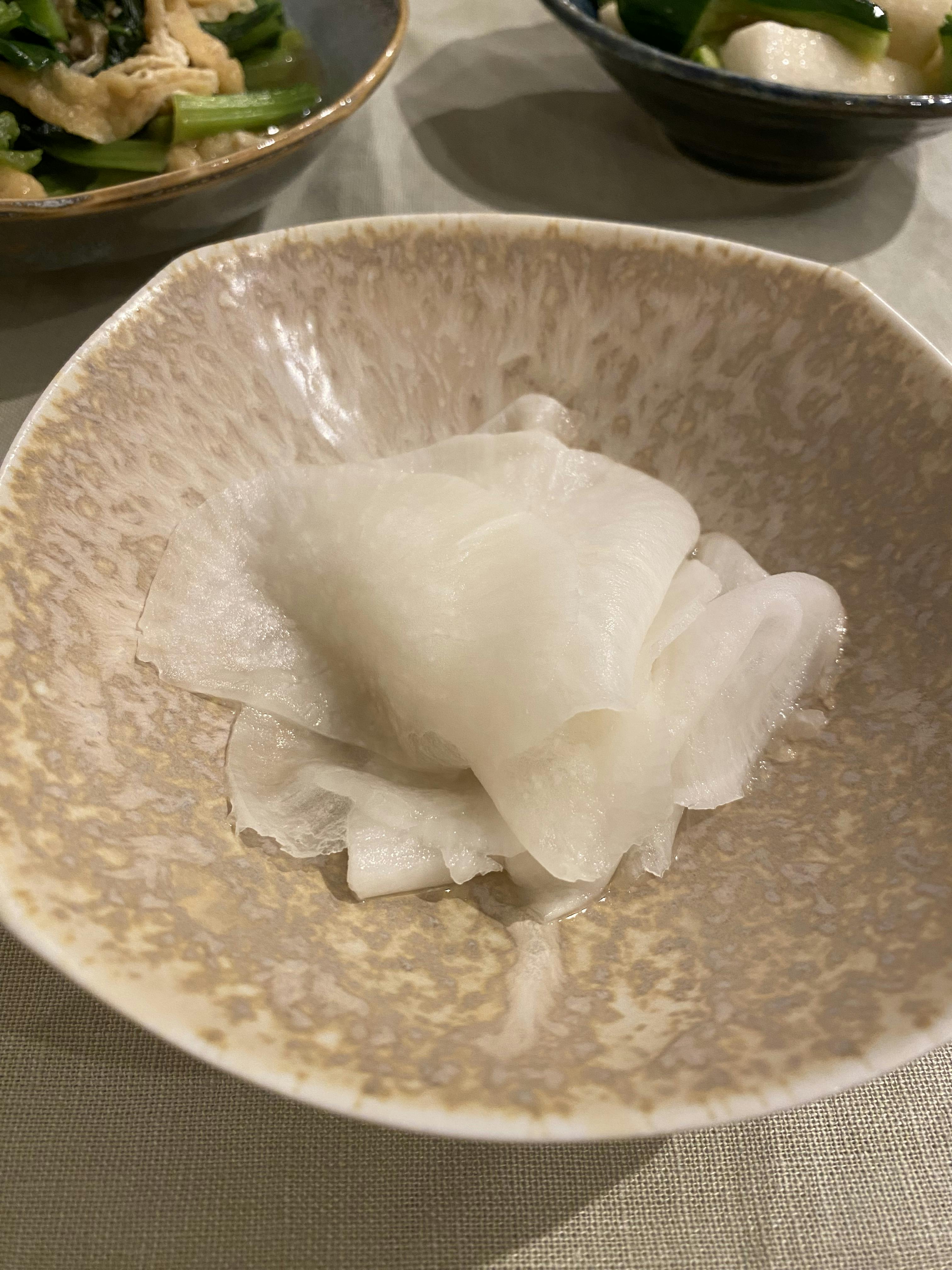 新米の美味しい季節になりました。🍚 まとまりのない献立となってしまいましたが、、、 好きなものを寄せ集め夕食です!! 千枚漬けはだいこんを消費しきれない時、たくさん漬けてストックしています!
