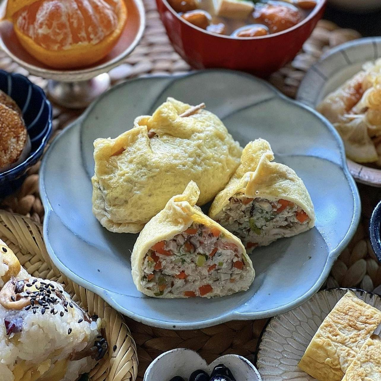 #和定食風ごはん ❁ 栗と木の子の炊き込みご飯おにぎり ❁ なめこと豆腐の味噌汁 ❁︎ 鶏挽肉と豆腐の彩り袋煮 ❁︎ 鶏むね肉のさっぱりレモン蒸し ❁︎ ブロッコリーの胡麻和え ❁︎ 長芋のステーキ柚子胡椒添え ❁︎ だし巻き卵 ❁︎ 黒豆煮 ❁︎ みかん🍊 彩り袋煮のレシピ載せています。 ヘルシーで美味しい一品です。 簡単にできますのでよかったら使ってみてくださいね。