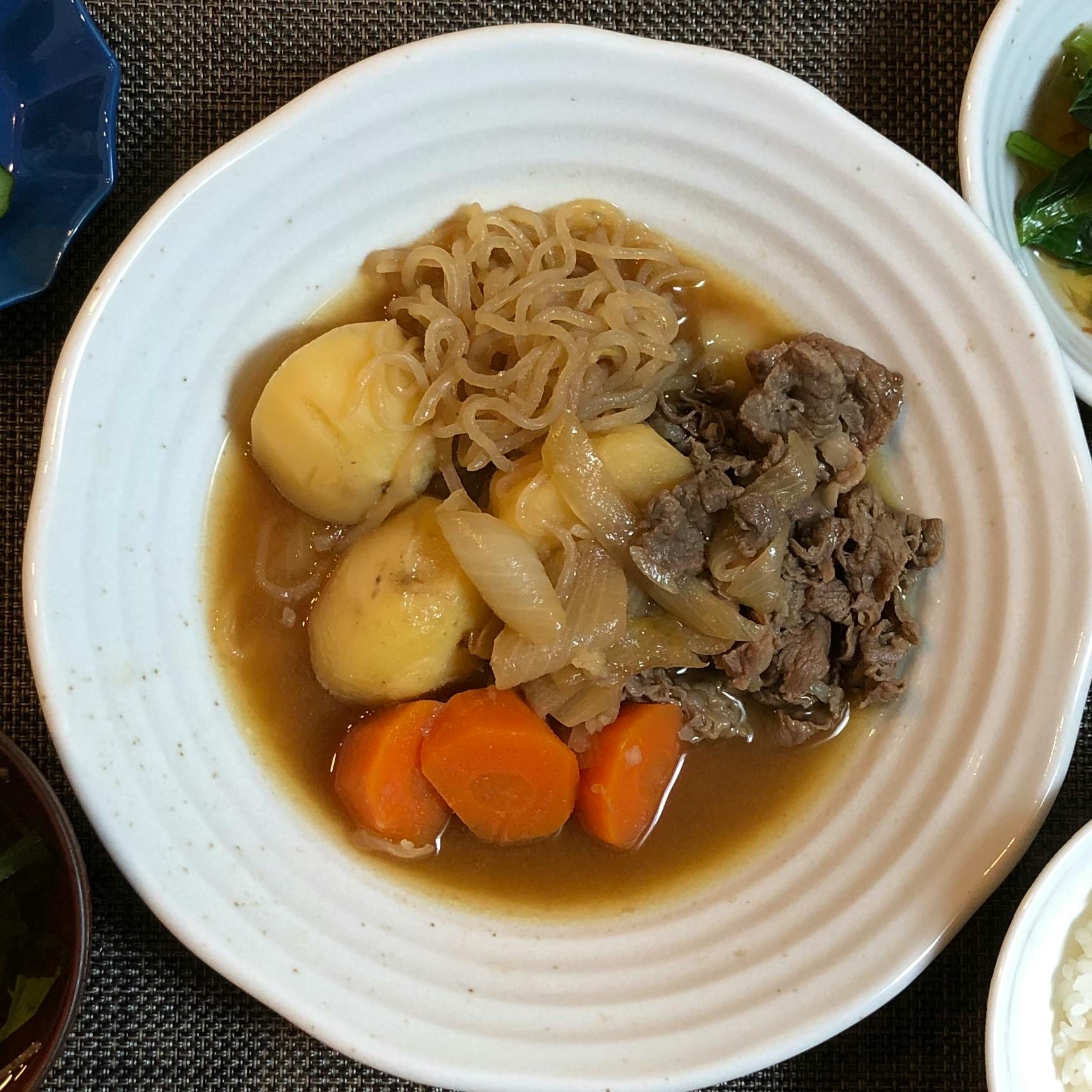最近menubleで肉じゃがメインの献立を投稿している方が多かったので、私も真似してみました🤭 肉じゃがって副菜のイメージだったけど、メインでも全然ありだった👏🥢 副菜のきゅうりの浅漬けは、簡単スピーディーにできる一品なので、よく作ります🥒