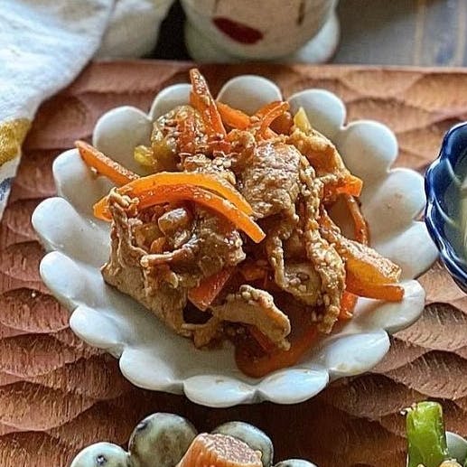 豚こまとにんじんの胡麻味噌炒め