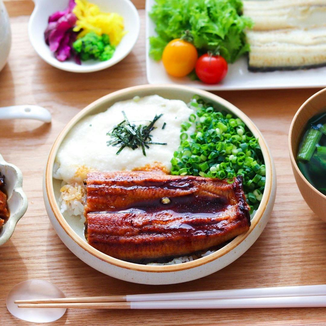 ꕤ うなとろ丼 ꕤ 鰻の白焼き ꕤ うざく ꕤ 漬物 ꕤ 茶碗蒸し ꕤ お吸い物 今日は鰻三昧の日🙌✨ プレキャンでいただいた鰻を贅沢に❤️ 白焼きって大人になって…というか、 昨年くらいに初めて食べたけど めっちゃ美味しいよね… ご飯はもちろんお酒がめちゃくちゃ進む❤️❤️❤️