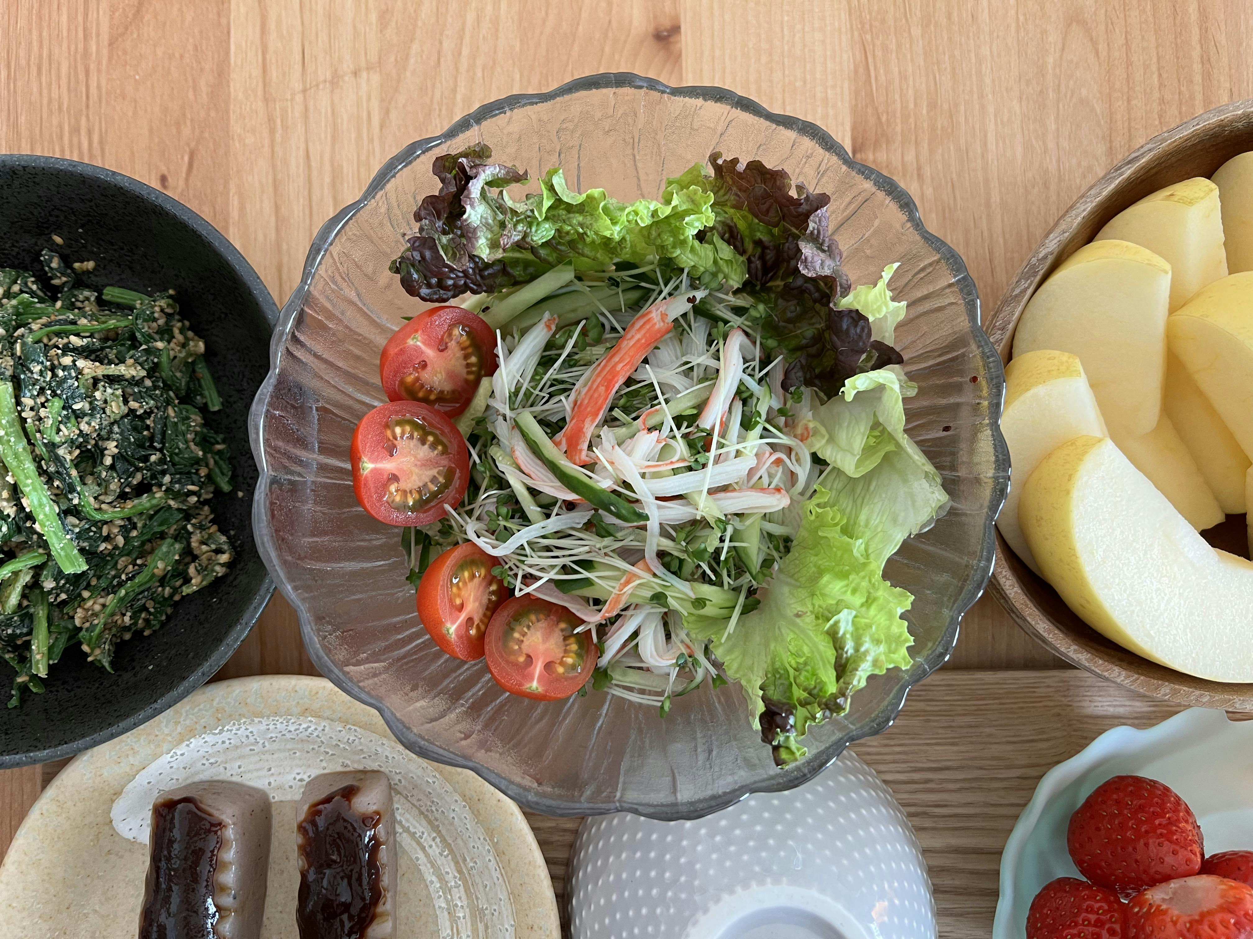 🐟🍚🍜 𖧵ちりめんじゃこごはん 𖧵具沢山豆乳うどん 𖧵こんにゃく田楽 𖧵スプラウトとカニカマのサラダ 𖧵ほうれん草のごま和え 𖧵りんご 𖧵いちご 前日の豆乳鍋の素の残りで具沢山おうどんに💫 私は体調悪くてほぼ食べれなく、 仕事で疲れて朝帰宅した👨🏻さんのご飯を 撮らせてもらったので、 朝の光でいつもと違って写真が明るめ🌞✨ :