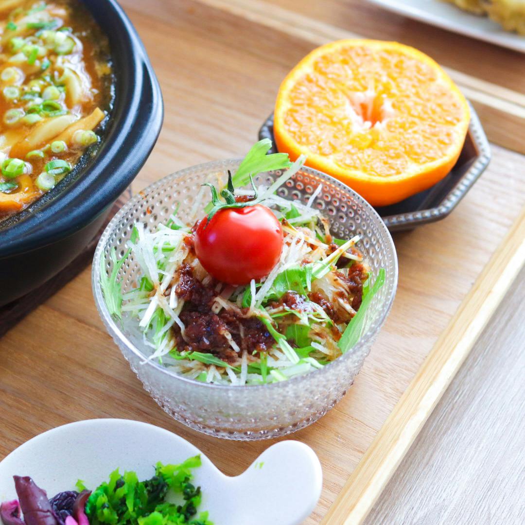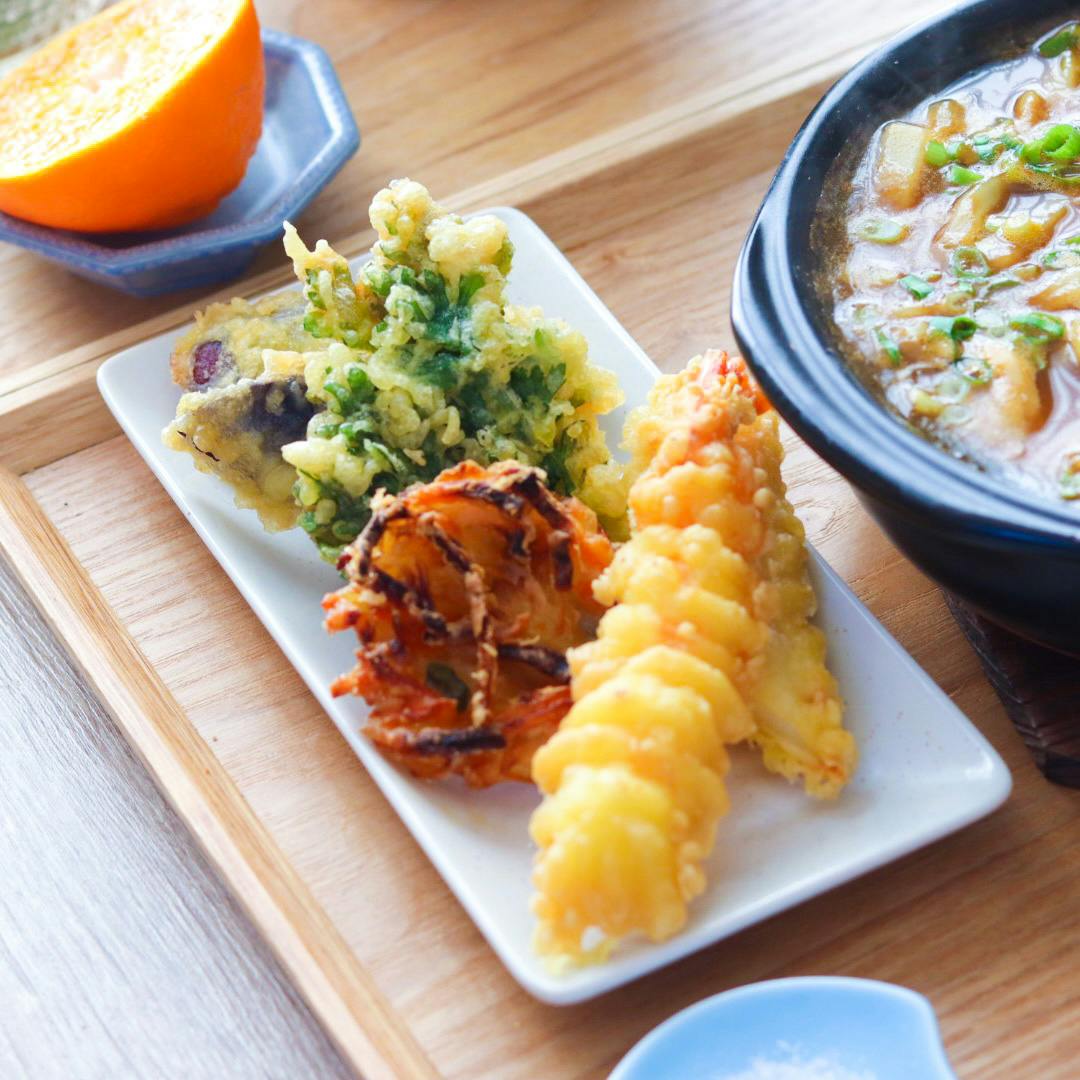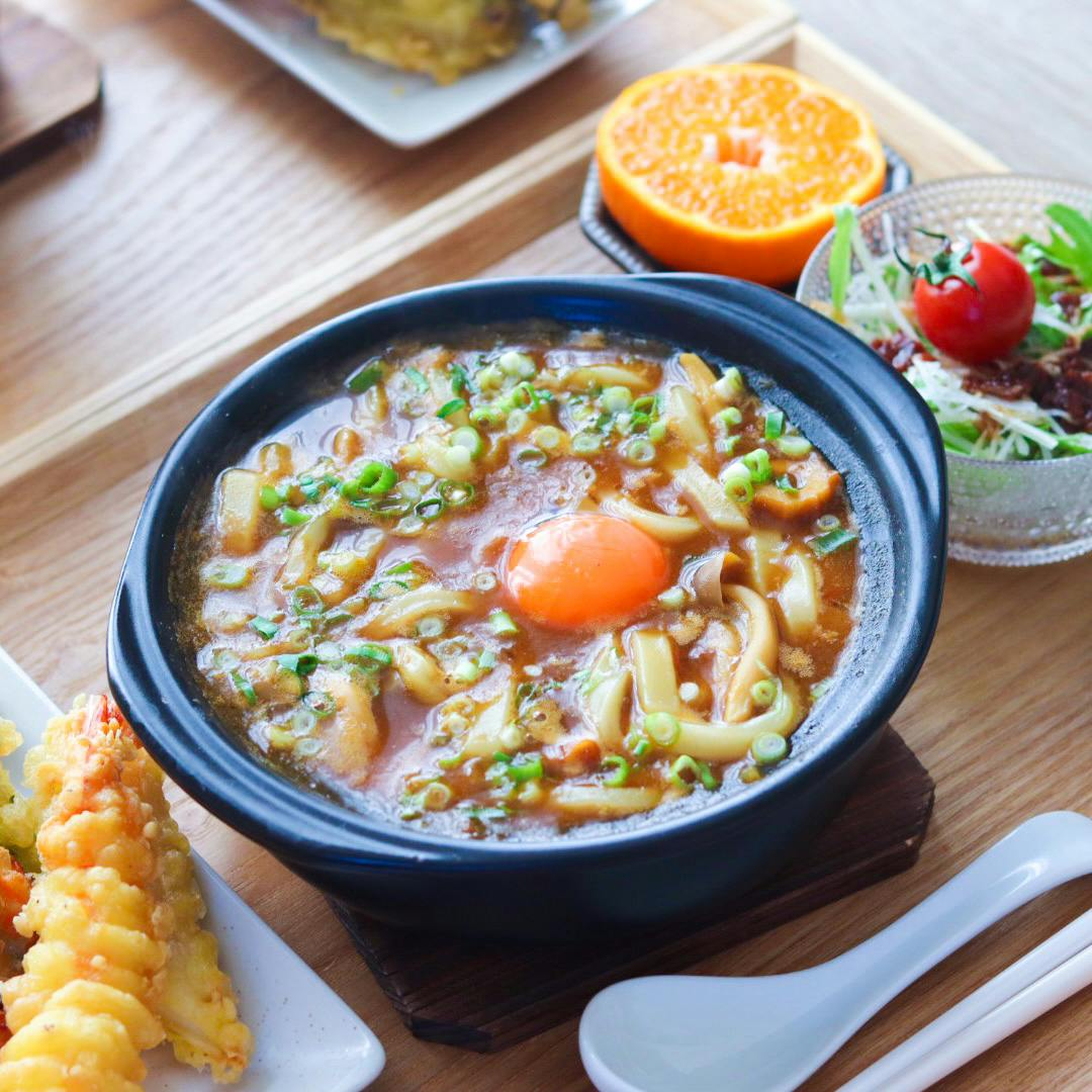 ꕤ カレーうどん ☜ レシピあり ꕤ 天ぷら ꕤ 漬物 ꕤ 大根と水菜のサラダ ꕤ フルーツ 今日は昨日作ったカレーの残りで カレーうどん◥█̆̈◤࿉∥ だしのきいたサラっとしたカレーうどんが大好き❤️ ドロっとしたのもいいけど、 温めながら食べると焦げ付くから…😇