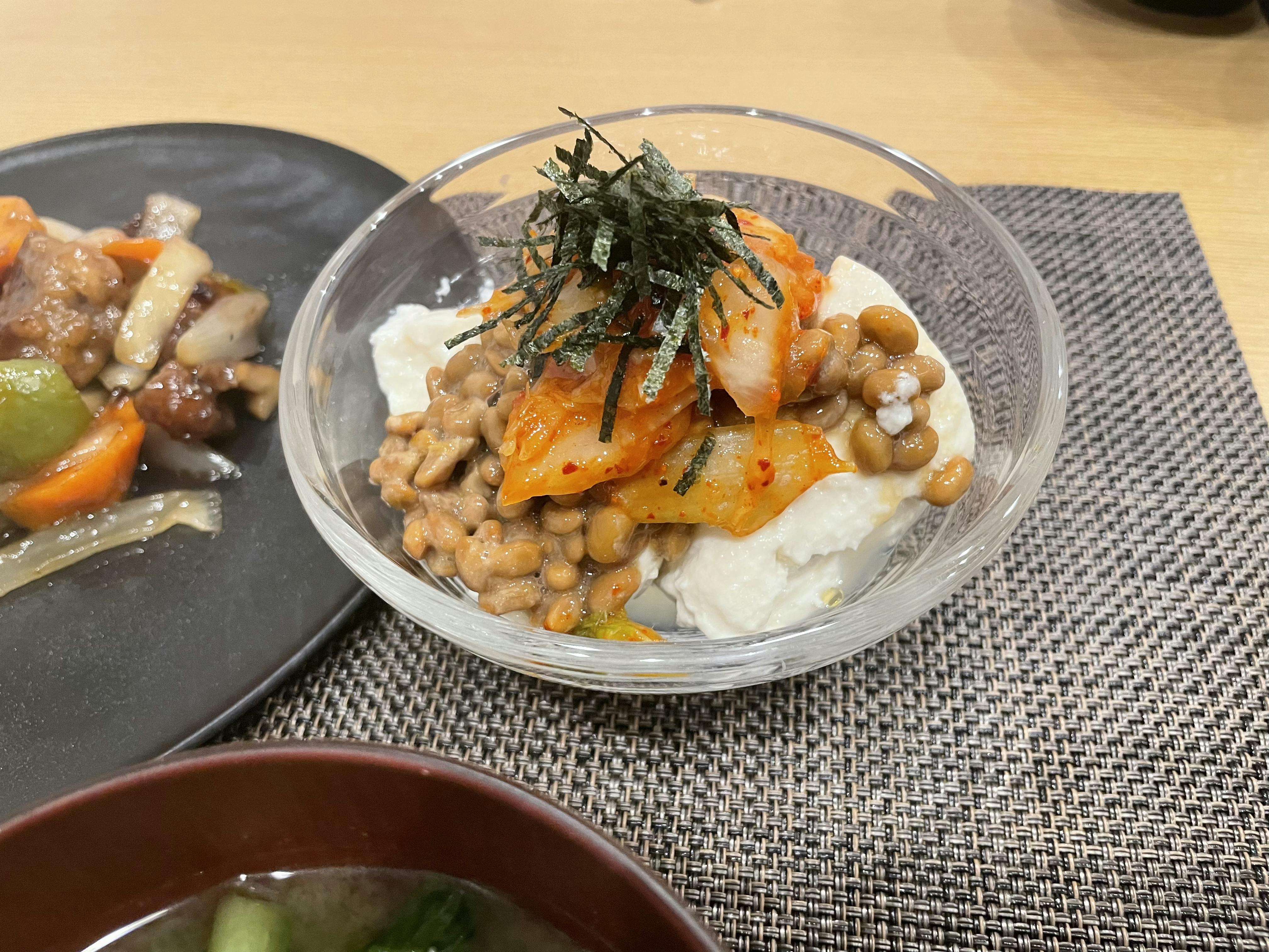 本日もパルシステムのお料理セットで楽ちんご飯です😂 「酢豚」がお料理セットのものです🐔 すでに唐揚げ状になっていて、さっと火を通すだけでした👏 揚げ物なんて平日にやる元気ないから、とっても助かる🙏 副菜の「キムチ納豆冷奴」はテレビ東京で放送していた、【晩酌の流儀】というドラマでやっていた再現レシピです! お豆腐に納豆・キムチ・胡麻油をさっとかけるだけで、簡単美味しい一品になります✨ ちょっと良いお豆腐を使うと更に美味しいです🤭