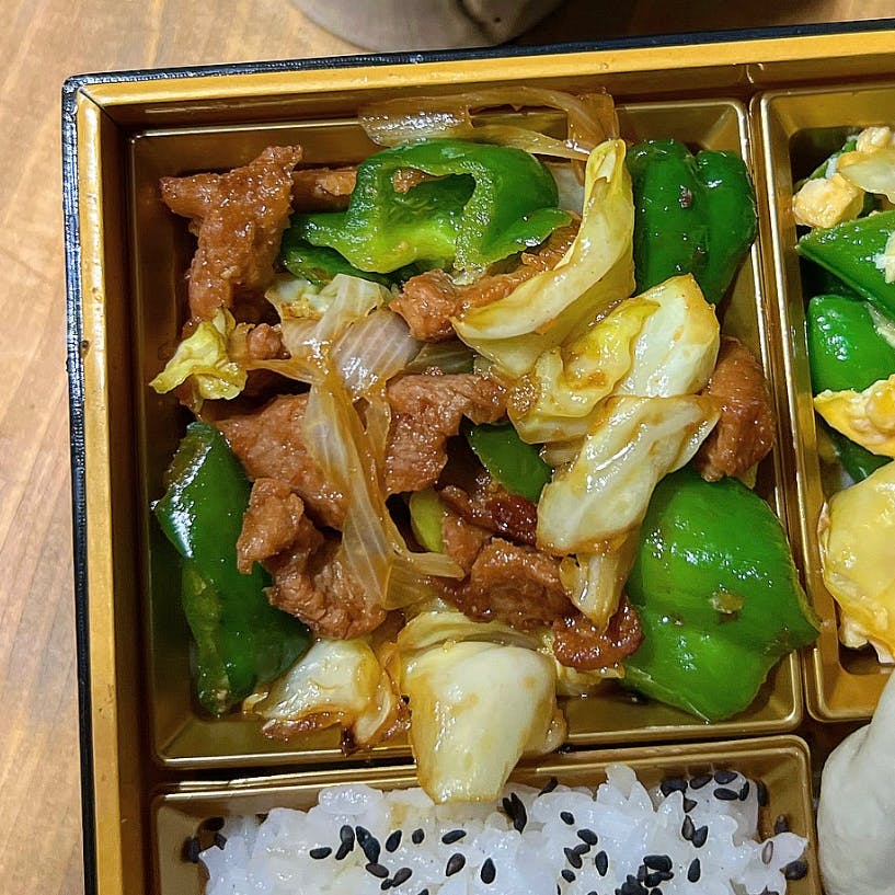 再びお節の入っていた重箱をお弁当風にアレンジ。 ❁︎ 回鍋肉 ❁︎ いろいろ野菜とふんわり卵の中華風炒め ❁︎ 麻婆茄子 ❁︎ 餃子 ❁︎ わかめスープ 実は回鍋肉で作っているお肉も 麻婆茄子で使ってくるお肉も 大豆のお肉 大豆ラボ を使っているので 中華と言ってもヘルシーです。