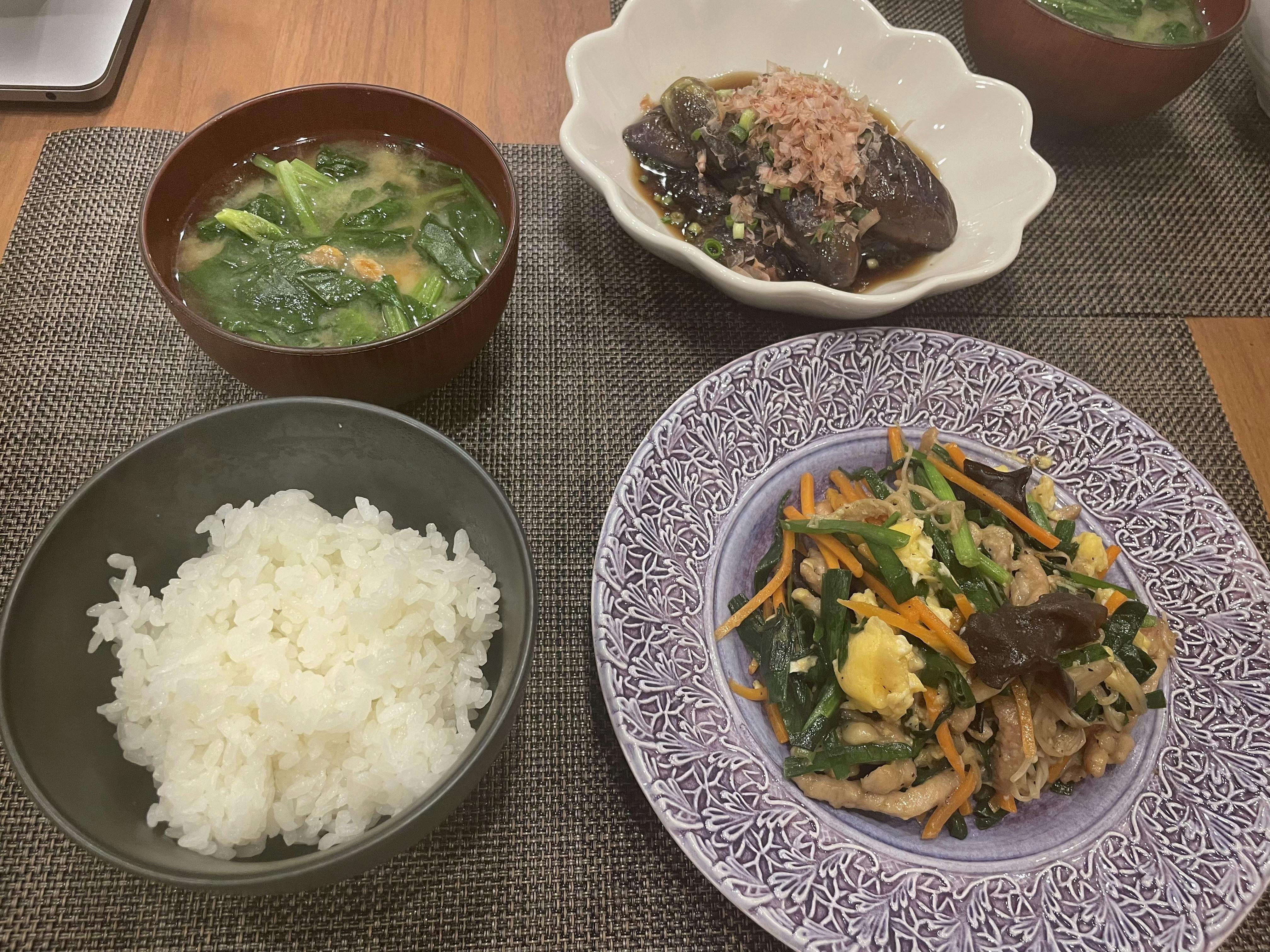 豚ニラ炒めと副菜の茄子のおかずを参考にさせて頂きました🙌✨
