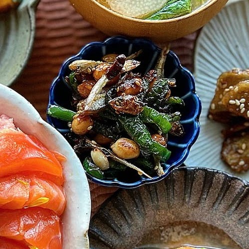 ピーマンと小魚のピーナッツ和え