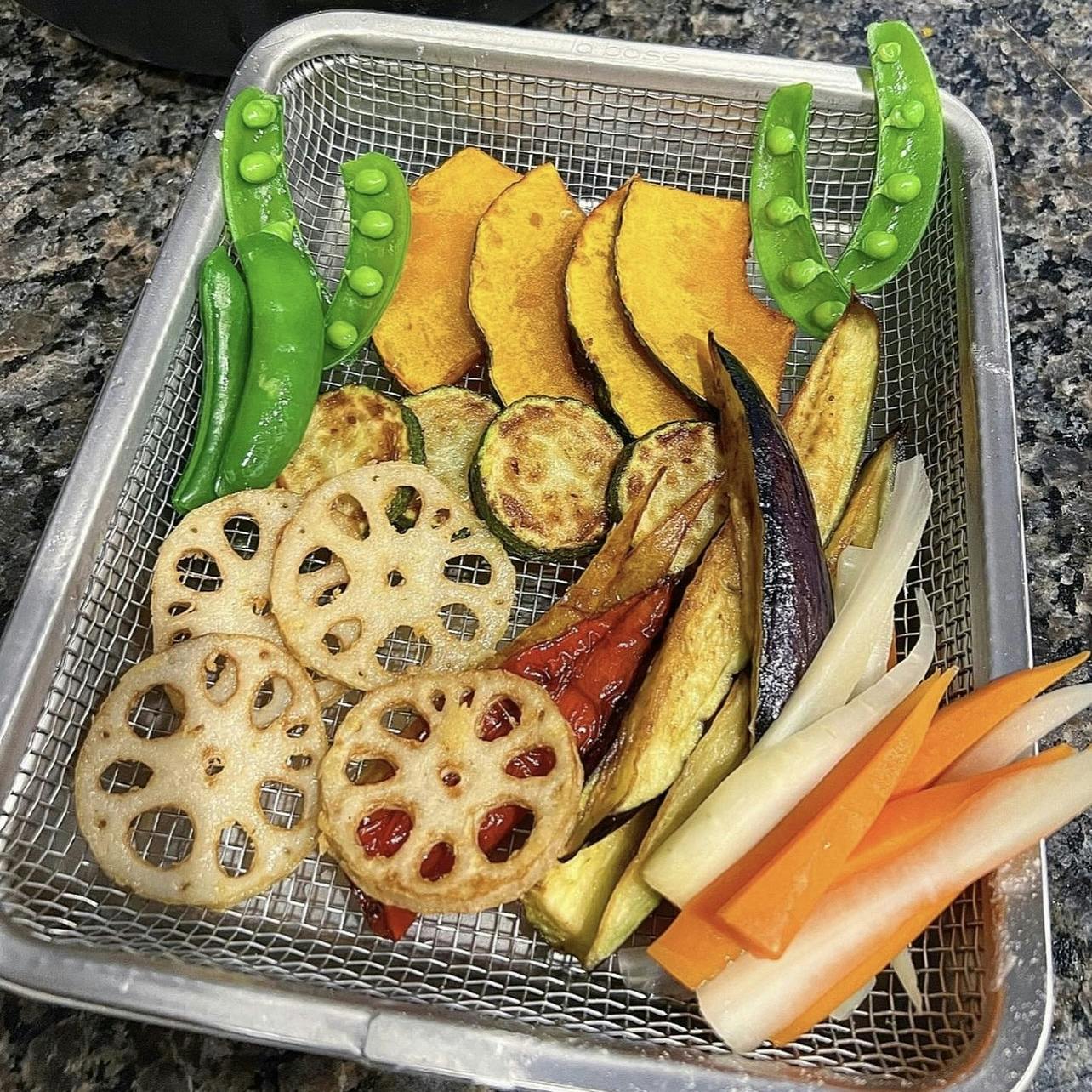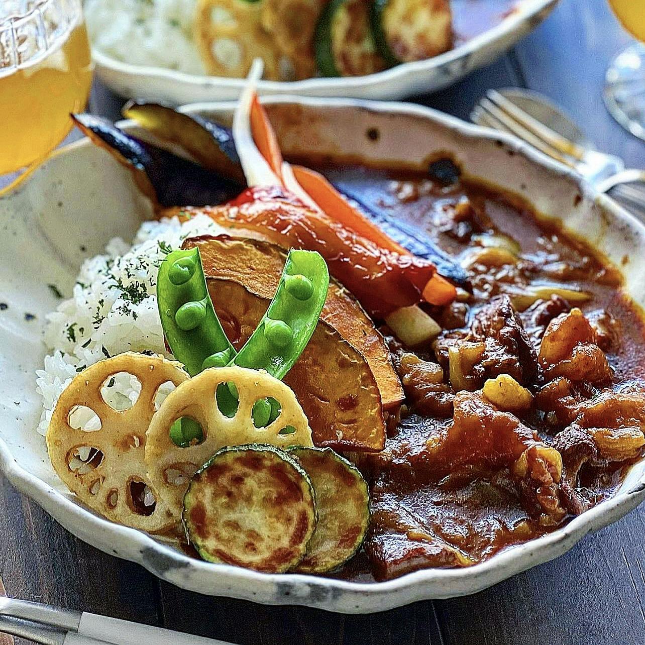 オートクッカービストロを使って牛すじカレーを作ってみました。 材料入れてスイッチポンであとはお任せ。 とろとろの美味しい牛すじカレーができました。 素揚げした野菜と茹でた野菜をトッピングして一皿でバランス良く🤗✨ 使ったお野菜2枚目にあげています。