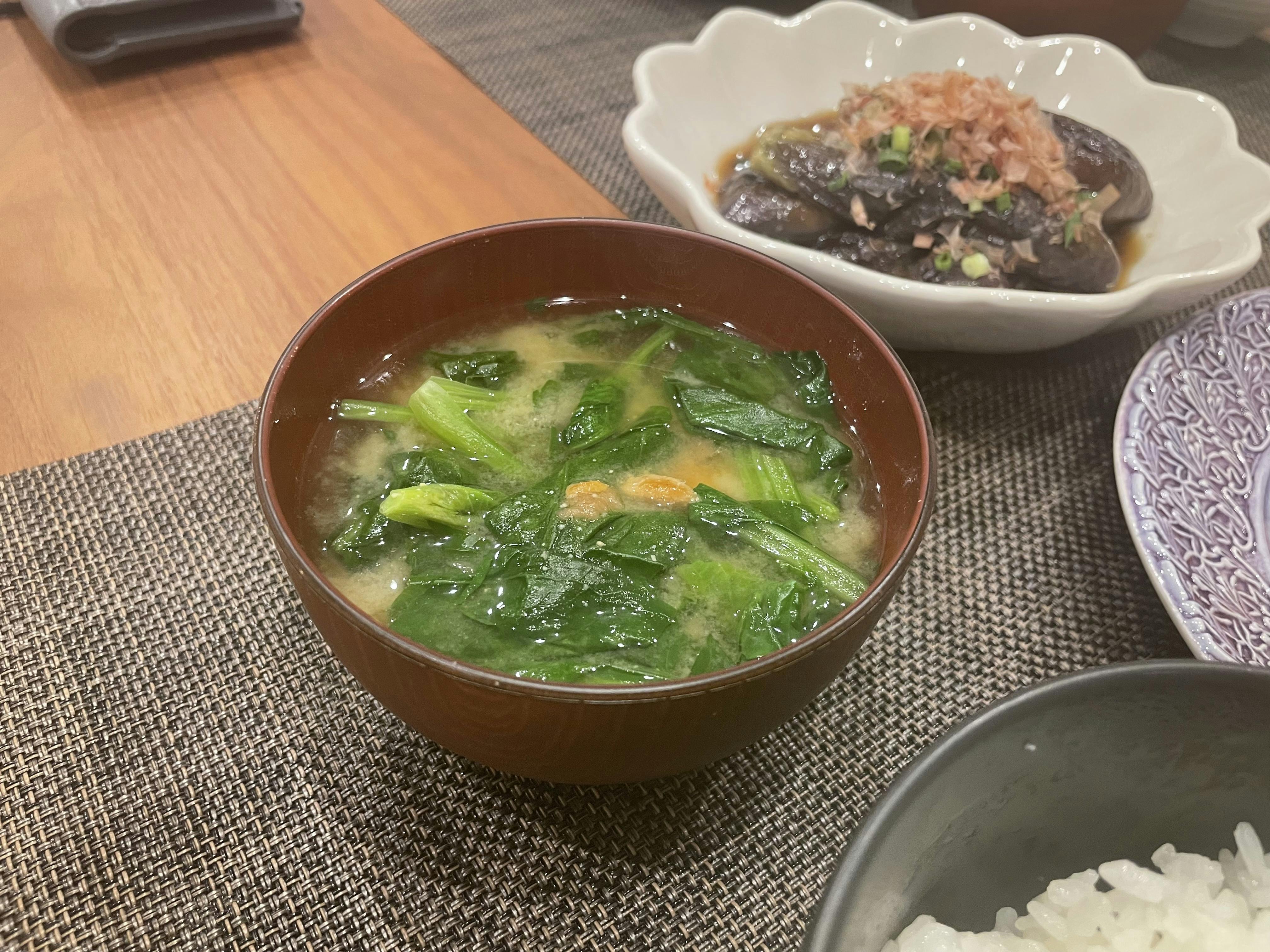 ほうれん草と梅干しのお味噌汁