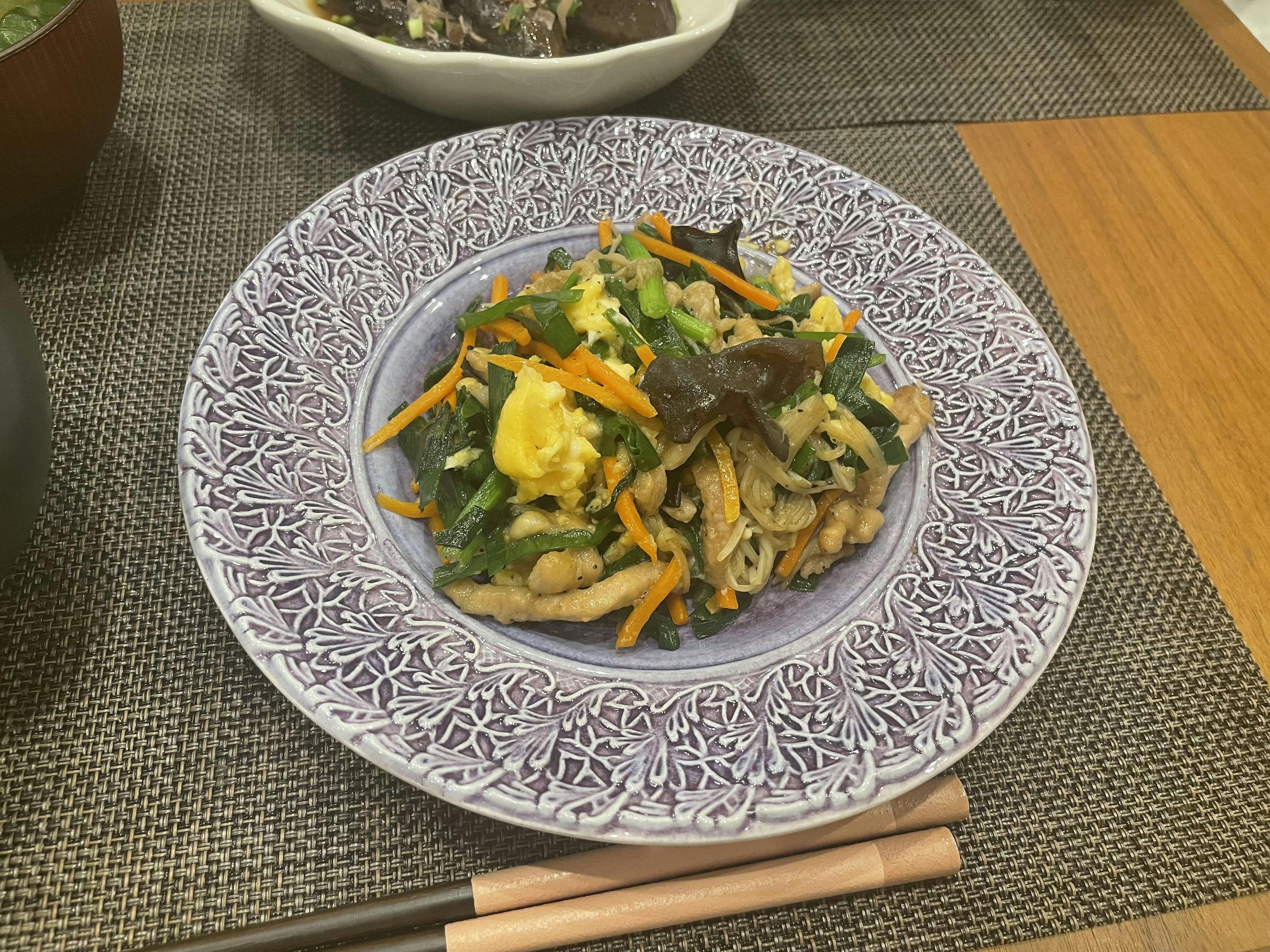 国産きくらげの入った豚ニラ炒め