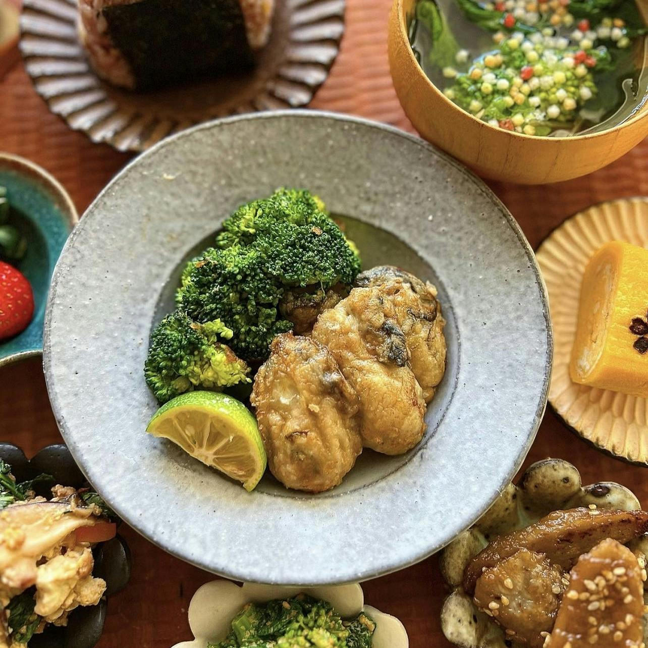 大ぶりの牡蠣をムニエルに。 レモンバター醤油の味付けが酸味もありながらコクもあって美味しい。 副菜もちょこちょことあると嬉しいですよね。 ❁ 牡蠣のムニエル レモンバター醤油 ❁ 甘い卵焼き ❁ ごぼうの甘辛炒め ❁ 菜の花の胡麻あえ ❁ 炒り豆腐 ❁ 小松菜とぶぶあられのスープ ❁ 一六雑穀米のおにぎり ❁ いちご🍓