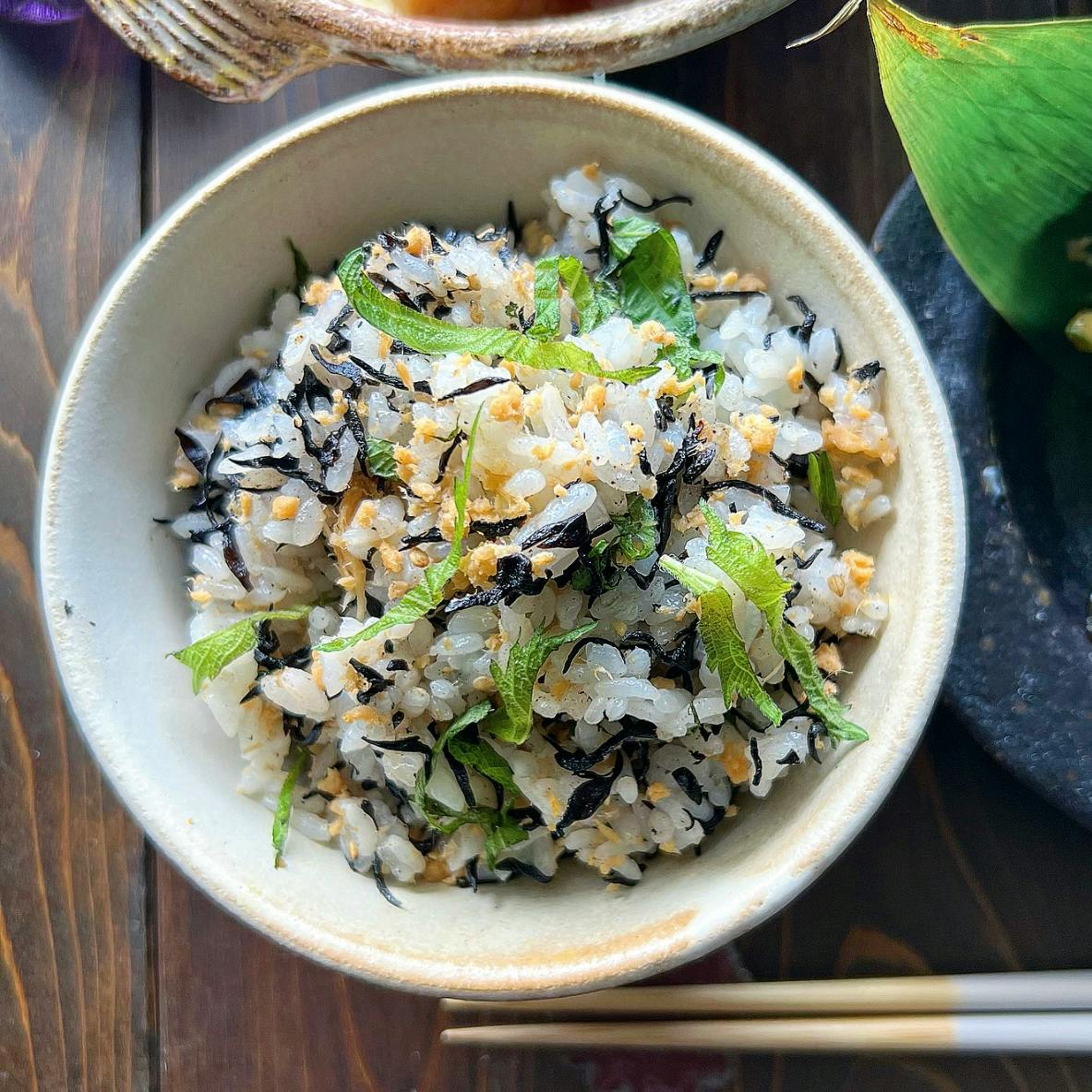 鮭フレークとひじきと大葉の混ぜご飯