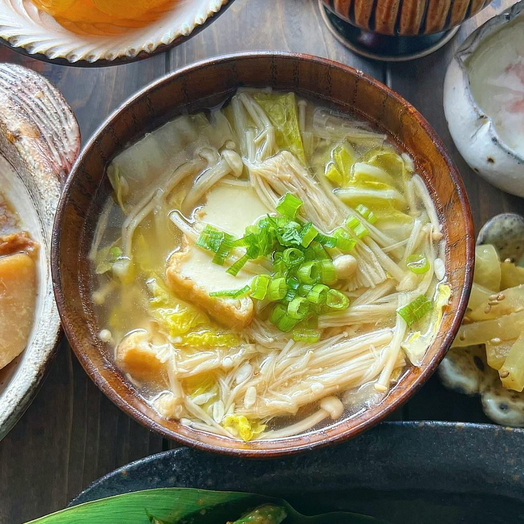 厚揚げと白菜と榎茸の味噌汁