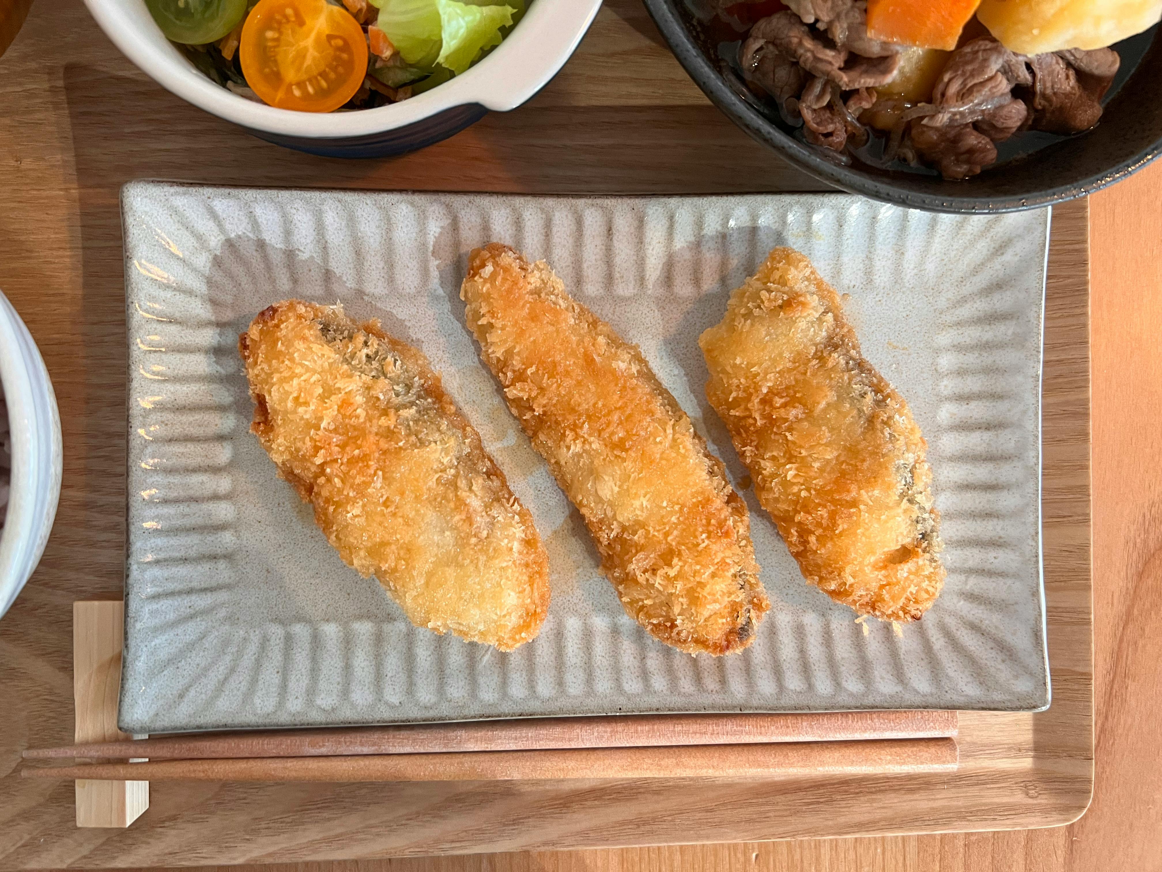 秋鮭フライと肉じゃが
