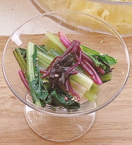 ✴︎ピーマン・椎茸の肉詰め ✴︎そうめんかぼちゃ ✴︎アマランサスと小松菜のナムル ✴︎スナップエンドウしらす添え ✴︎トロたく(ネギトロとたくあん) ✴︎紅大根の味噌汁 そうめんかぼちゃとアマランサス、珍しい野菜に出合ったのでこの時期ならでは!と作りました。そうめんかぼちゃは輪切りに切ってから10分程茹でると繊維がほろほろと剥がれてきて素麺のようになります。水気を絞ってごまだれで食べるのがオススメです。 アマランサスの種子は雑穀米などに入っていますが葉を見たのは初めて!ピンク色のとても綺麗な葉で苦味などもなくおいしかったです!