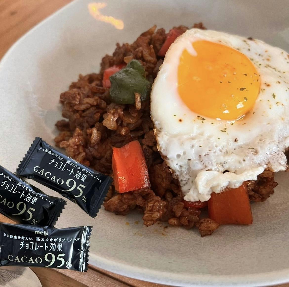 🍫🍳🍚 𖧵チョコレート効果カカオ95%入り 黒いジャンバラヤ 𖧵炊飯器でポテトサラダ 𖧵おつまみ蛇腹きゅうり 𖧵ゴールデンキウイ _________ チョコレート効果の3種アソートを購入したところ、 カカオ95%が予想外に食べられなくて 明治さんのサイトに載っていたレシピで 黒いジャンバラヤを作ってみました🍚🖤 レシピ通りチョコ4枚使ったらかなりコク深く、 半分の2枚でよかったかも🥲 後日、料理ではなく、 バニラアイスに刻んだ95%チョコをかけたら 全部アイス用にすればよかったと後悔するくらい すごく美味しかったです🥹🍨笑 :
