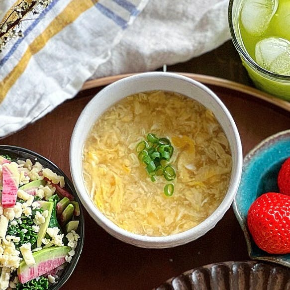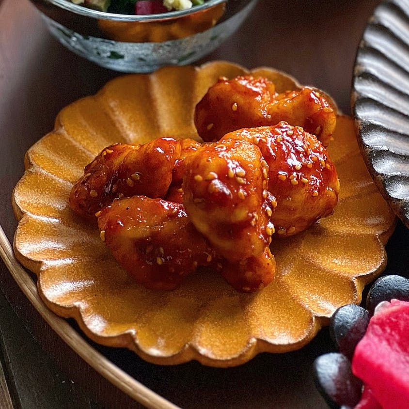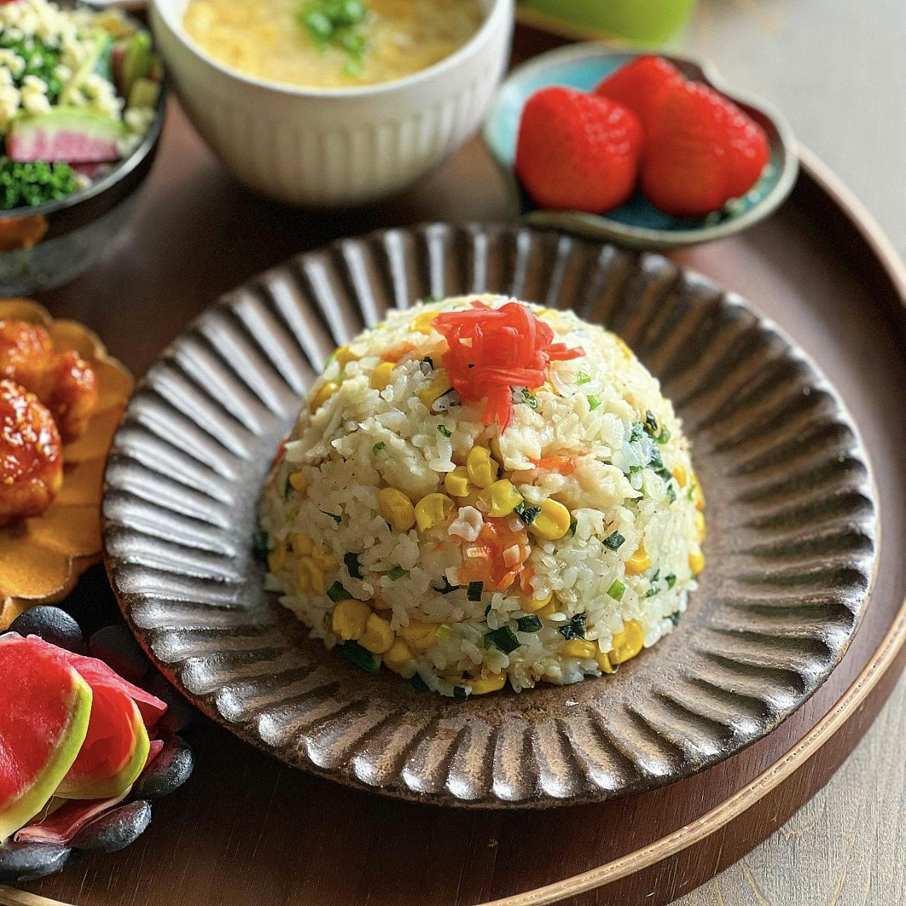 ❁ カニカマコーン炒飯 ❁ 鶏ささみのヤンニョムチキン ❁ 紅芯大根ととうふシュレッドのサラダ ❁ 新玉ねぎのかき玉汁 ❁ 紅芯大根の甘酢漬け ❁ いちご 冷凍ごはんを使って簡単チャーハン。 かき玉汁で卵を使っているので 卵は入れずにカニカマとコーンと小ネギでシンプルに。 ヤンニョムチキンもささみを使ったのでヘルシーです。
