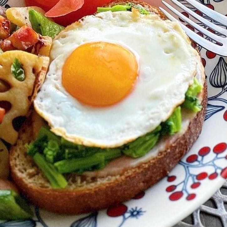 ハムと菜の花と卵のオープンサンド