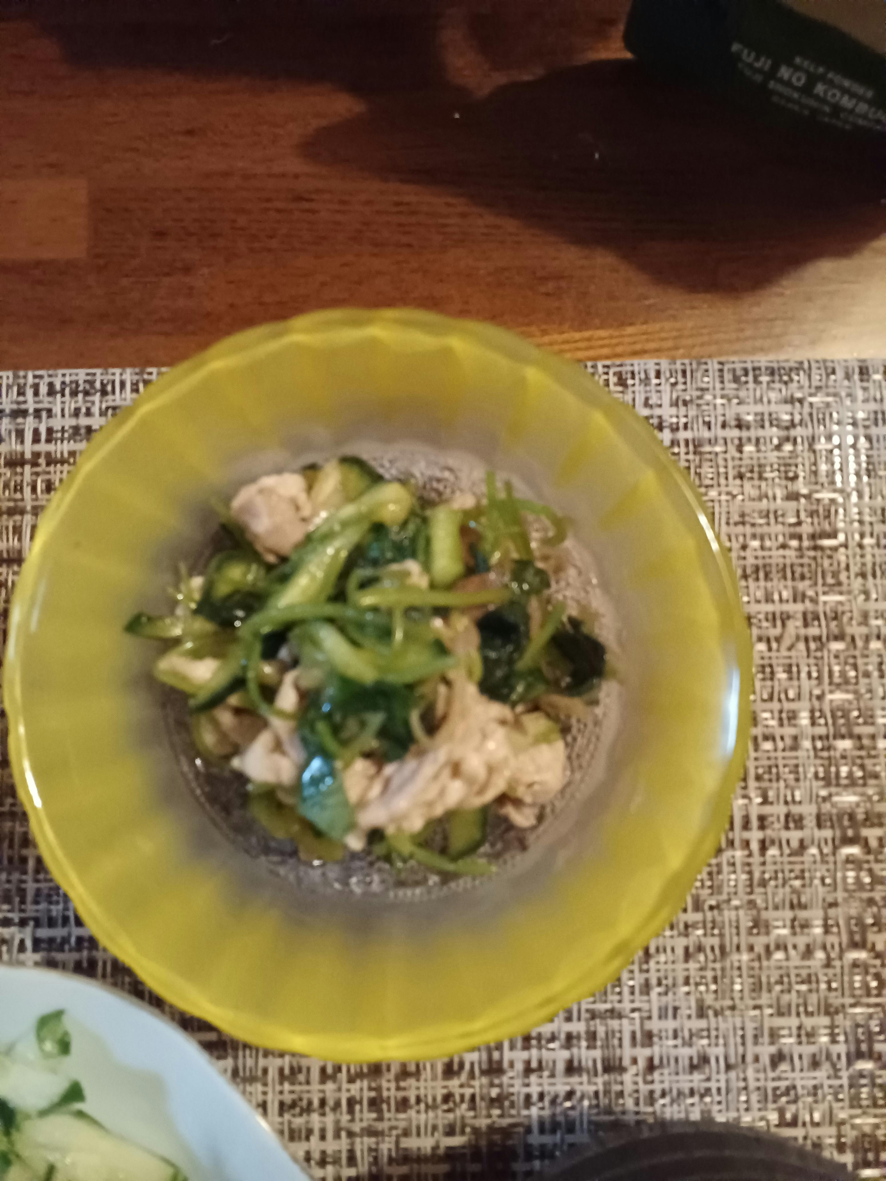 豚肉三つ葉キュウリの柚子胡椒和え