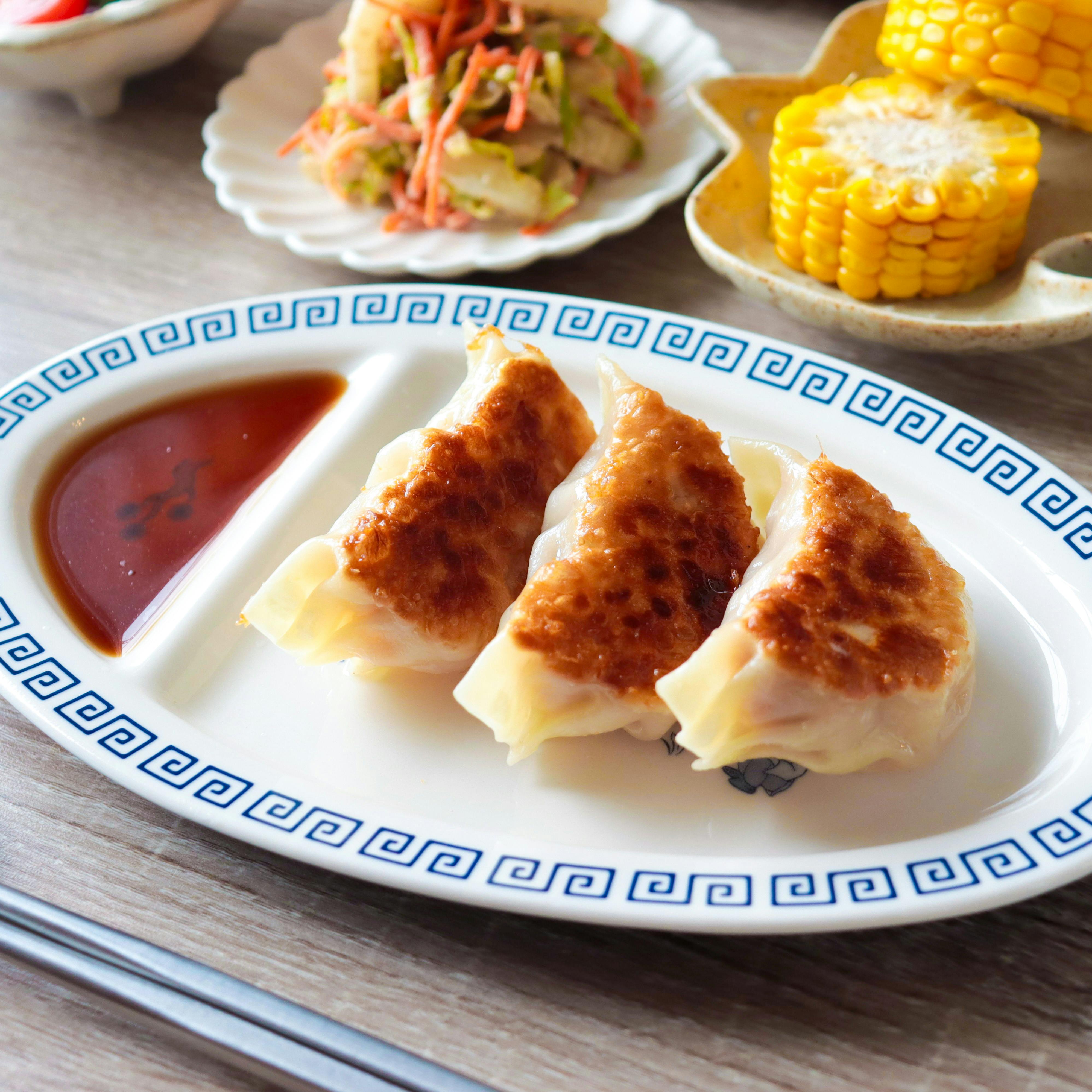 ꕤ 肉汁溢れる絶品餃子 ꕤ 白菜サラダ ꕤ とうもろこし ꕤ ミニトマトと大葉のぽん酢浸し ꕤ ごはん 普段はキャベツだったりとか、 ニラとかも入れたりするけど、 今回は白菜の美味しさを感じたくて、 白菜と豚ひき肉のみで。 わたしの得意料理と言っても過言ではない餃子。 餃子はわたしの作るやつが1番いい!! お店開けるんじゃない!? と夫に言わせるほどの自信作ぅぅ🤟🏻