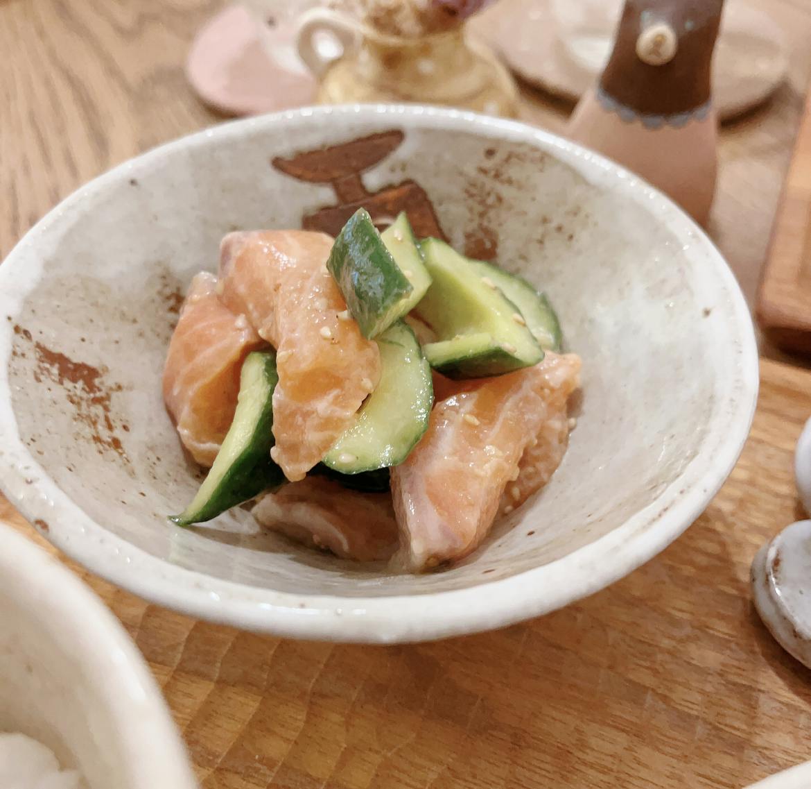 サーモンときゅうりの梅和え