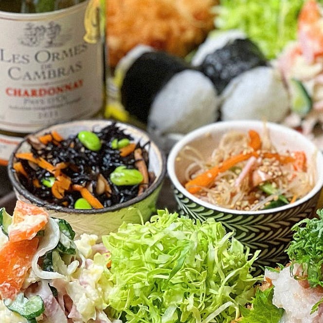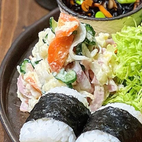 ❁ 梅おろしかつ ❁ ポテトサラダ &キャベツ ❁ 五目ひじき煮 ❁ 春雨の中華サラダ ❁ さつまいものレモン煮 ❁ 俵おにぎり とんかつは大根おろしと梅干しを合わせたものをたっぷりと。 ポン酢をかけていただきました。 あとは定番の作り置きおかずたち。 ボリュミーだけどヘルシーなワンプレートごはん。