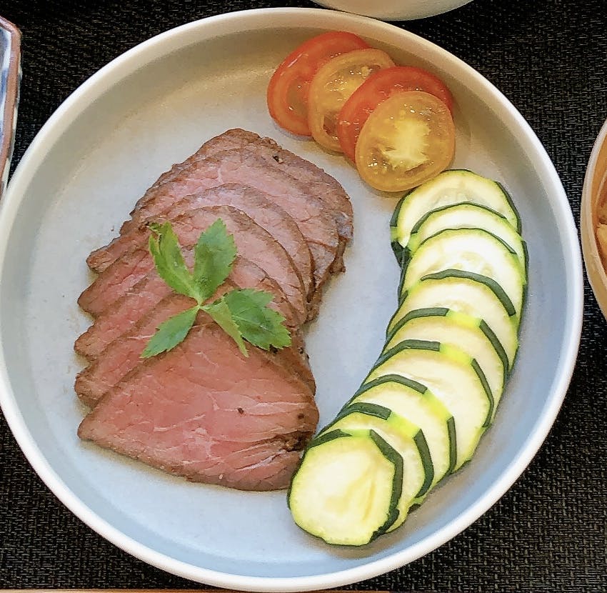 ✴︎ローストビーフ・ズッキーニ ✴︎茶碗蒸し ✴︎レンコンの明太子炒めと ピュアホワイト🌽 ✴︎しらすと茗荷の胡麻油和え ✴︎サーモンサラダ ✴︎玉ねぎとレンコンのお味噌汁 🌱ローストビーフはいただきものです。 🌱卵さえあれば茶碗蒸しは出来るので良く作ります。具もその時々あるもので😊