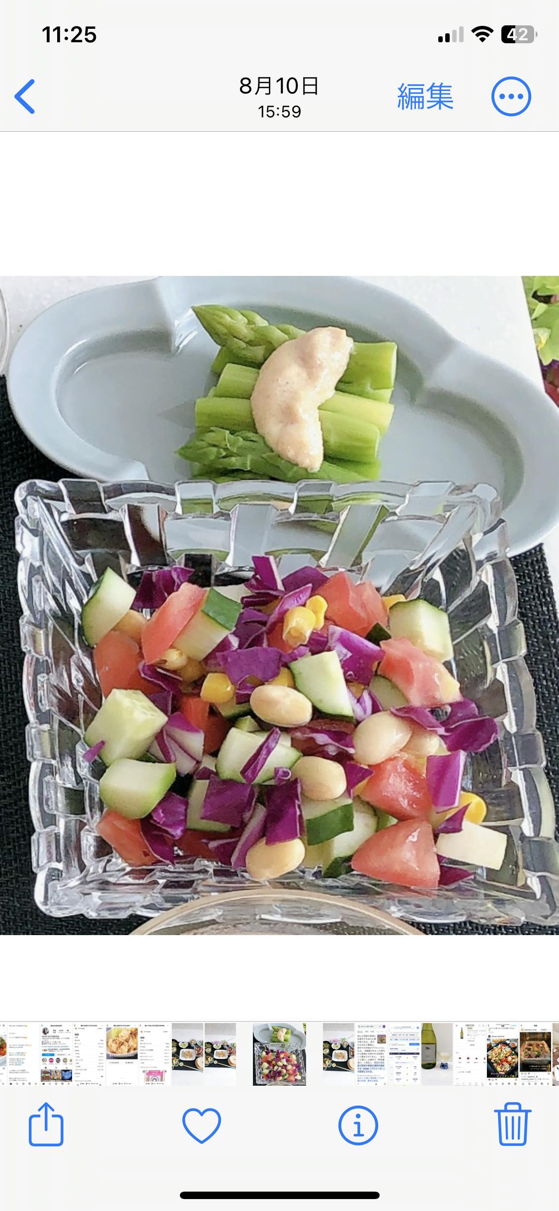 ✴︎鶏胸肉のネギだくソースかけ ✴︎セロリの浅漬け ✴︎あちゃら漬け ✴︎もやしのナムルと空芯菜炒め ✴︎チョップドサラダ ✴︎アスパラの明太子ソース ✴︎じゅんさいと長芋の酢の物 ✴︎ジャガイモのビシソワーズ 🌱あちゃら漬けというのを初めて作りました。福岡の郷土料理のようです。野菜を甘酢に漬けたものです。夏にさっぱりしたものは良いですね😊