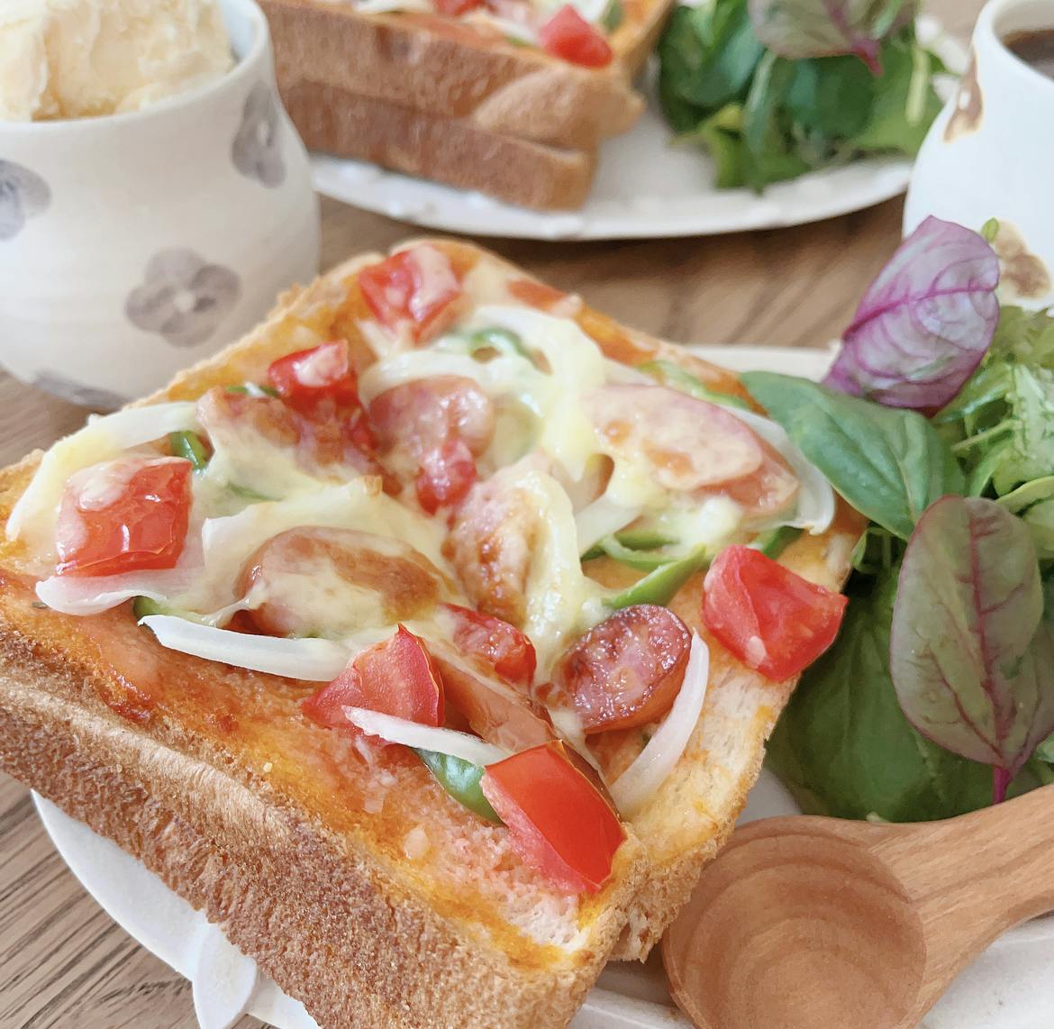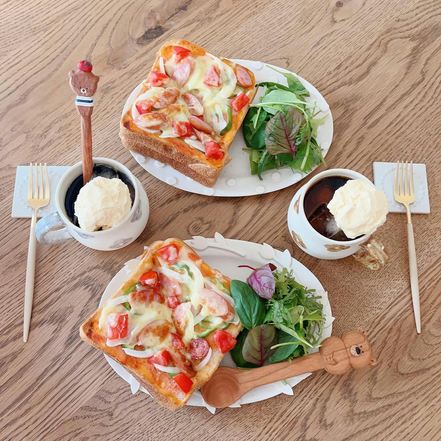 コメダ珈琲さん風ピザトースト。 間に卵ペーストを挟んでボリューミーで美味しかったです ♩