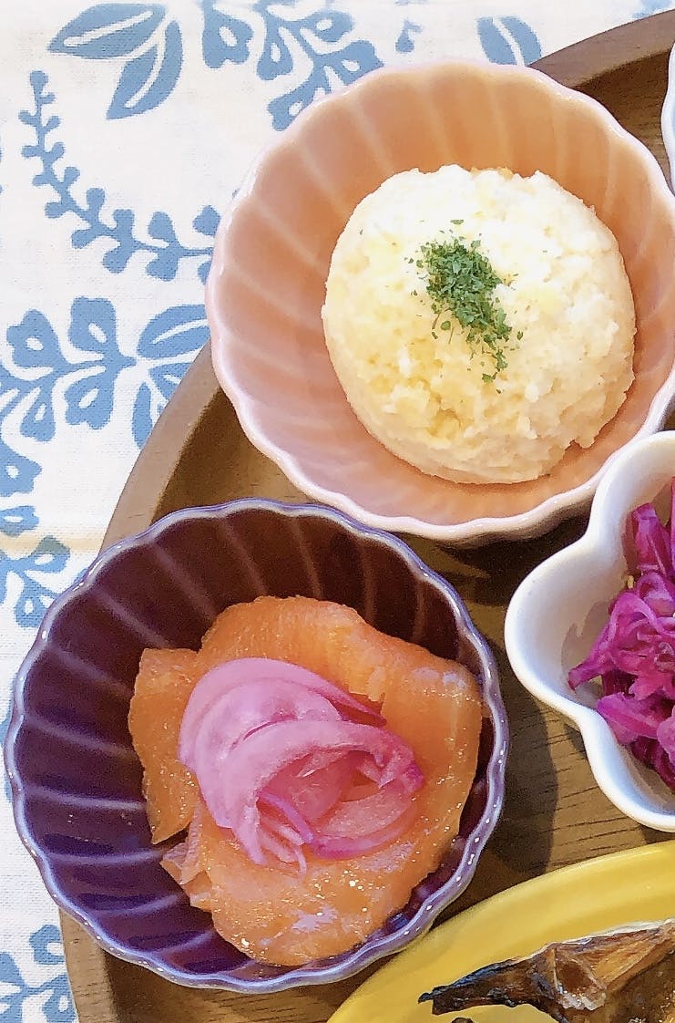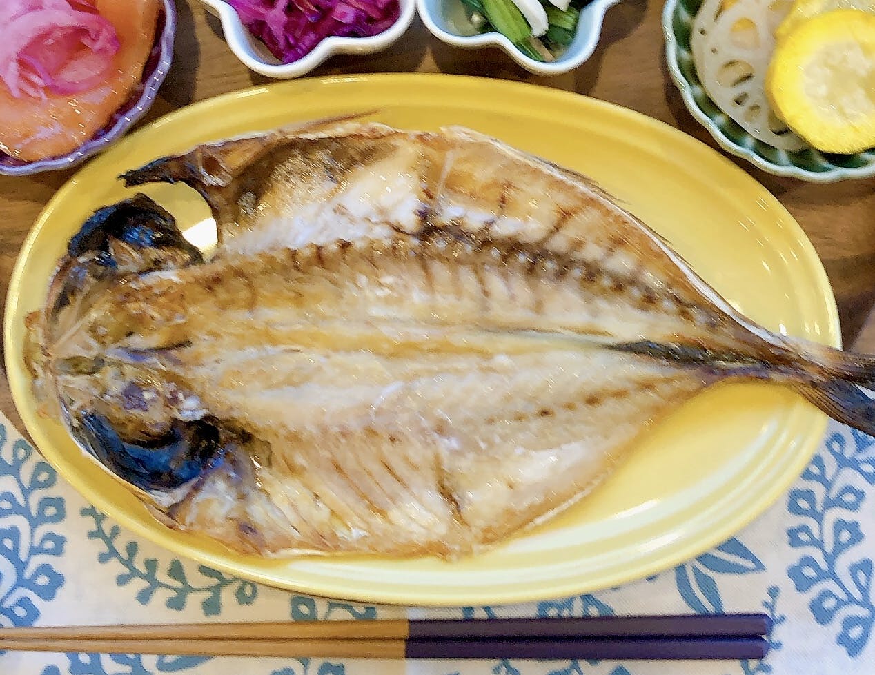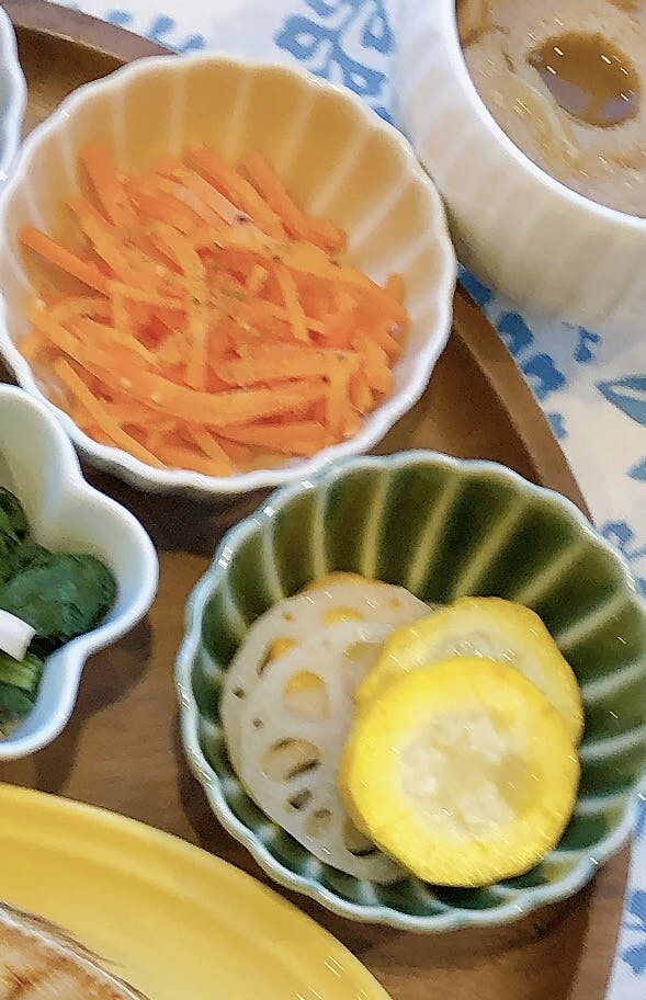 ✴︎真鯵の干物 ✴︎レンコンとズッキーニの麺つゆ炒め ✴︎人参ラペ ✴︎小松菜のナムル ✴︎明太ポテサラ ✴︎サーモンマリネ ✴︎紫キャベツラペ ✴︎ほうれん草のソテー ✴︎ミニ車麩とキャベツのお味噌汁 ✴︎玄米 🌱作り置きの常備菜をちょこちょこ盛り、干物を焼くだけ😊