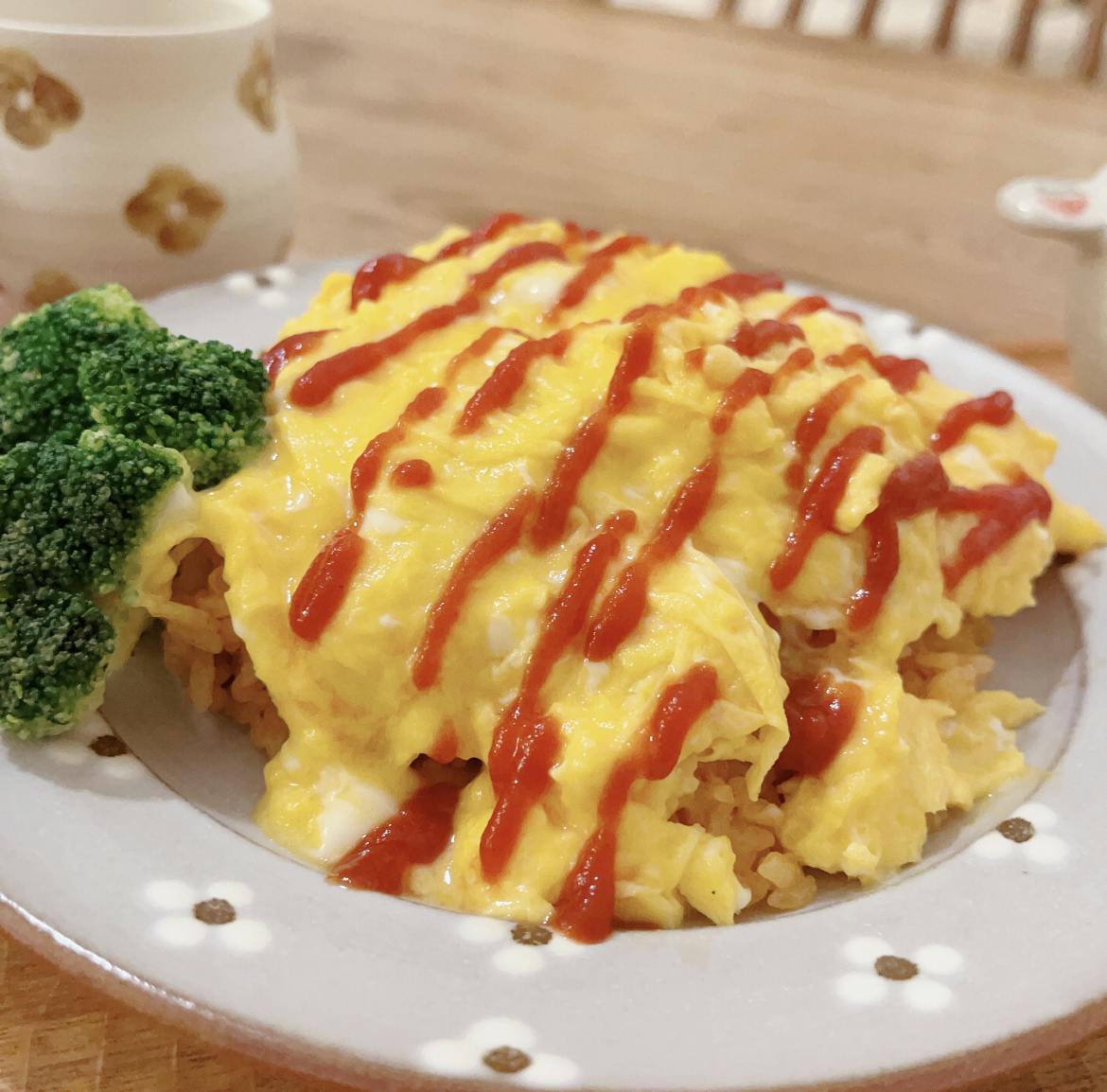 冷蔵庫にある物で。。 とろとろ卵難しい〜! ケチャップも上手く出せず笑