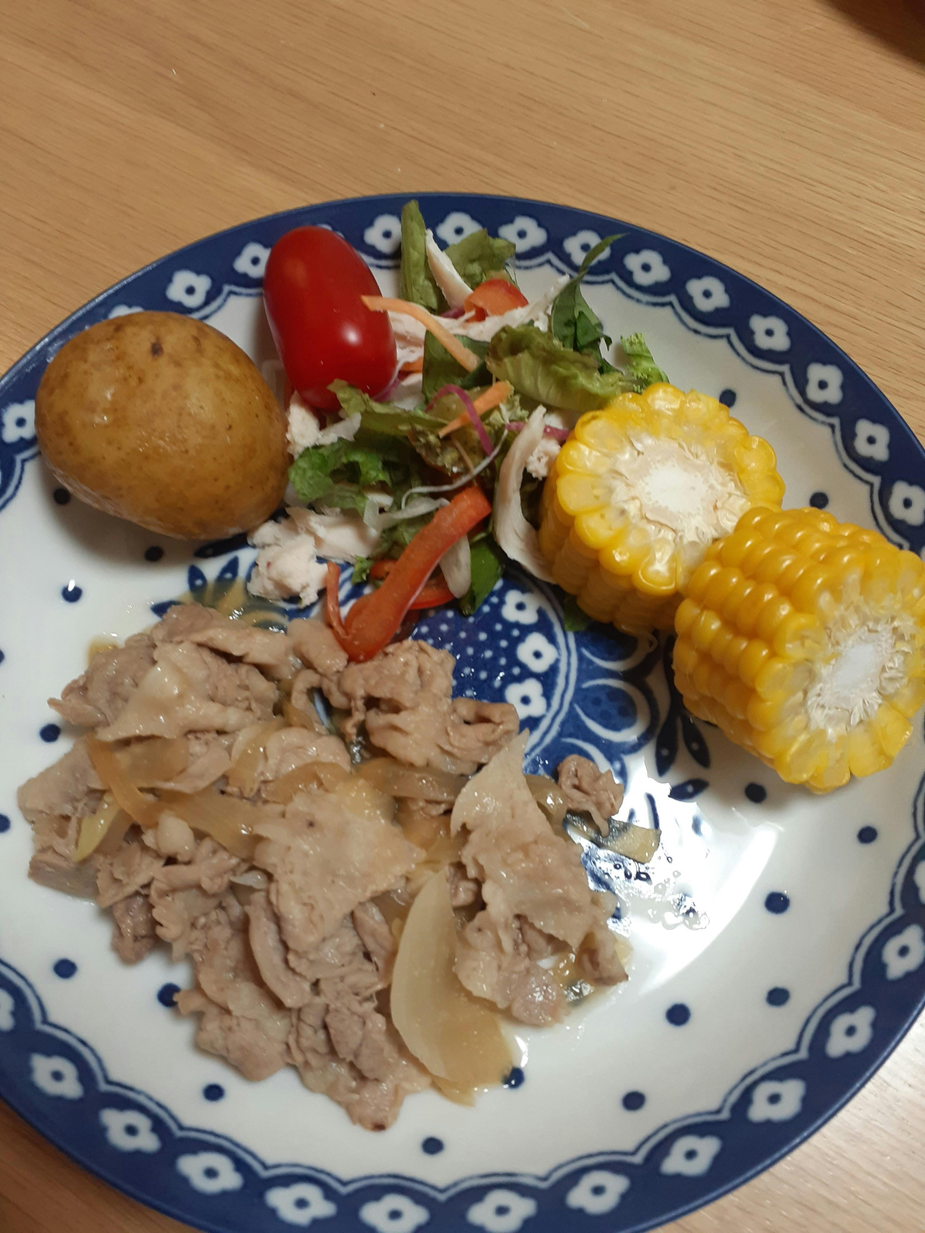 たまたま北海道産が多くなってしまいました(笑) 帆立の炊き込みご飯 生姜焼き じゃがバター(北海道土産) リーフサラダ(北海道産ミニトマト) とうもろこし(北海道土産) ぶどう