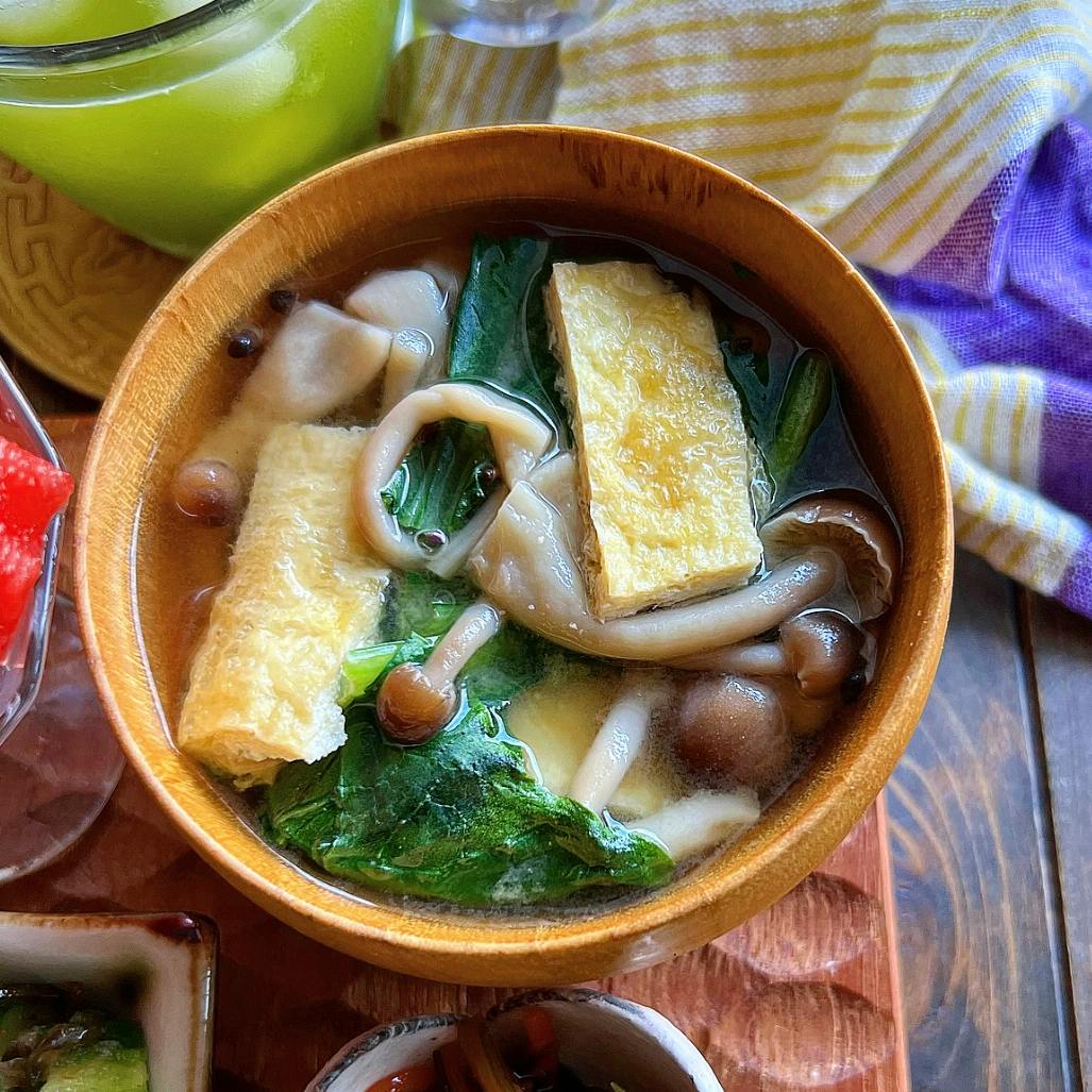 小松菜としめじと油揚げの味噌汁