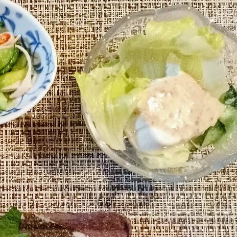 コノシロの揚げ焼き きゅうりとカニかま酢の物 豆腐サラダ 味噌汁(市販) 発芽玄米 関西では初めてスーパーで見たコノシロ。揚げ焼きに。小骨は多いですが美味しいですね🥰