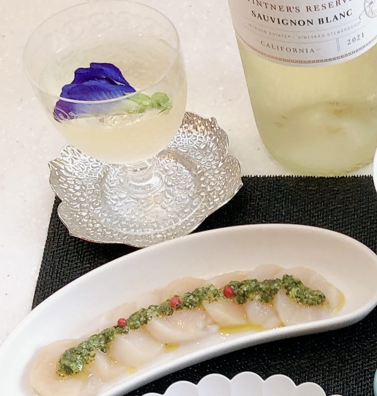 帆立のバジルソースがけ