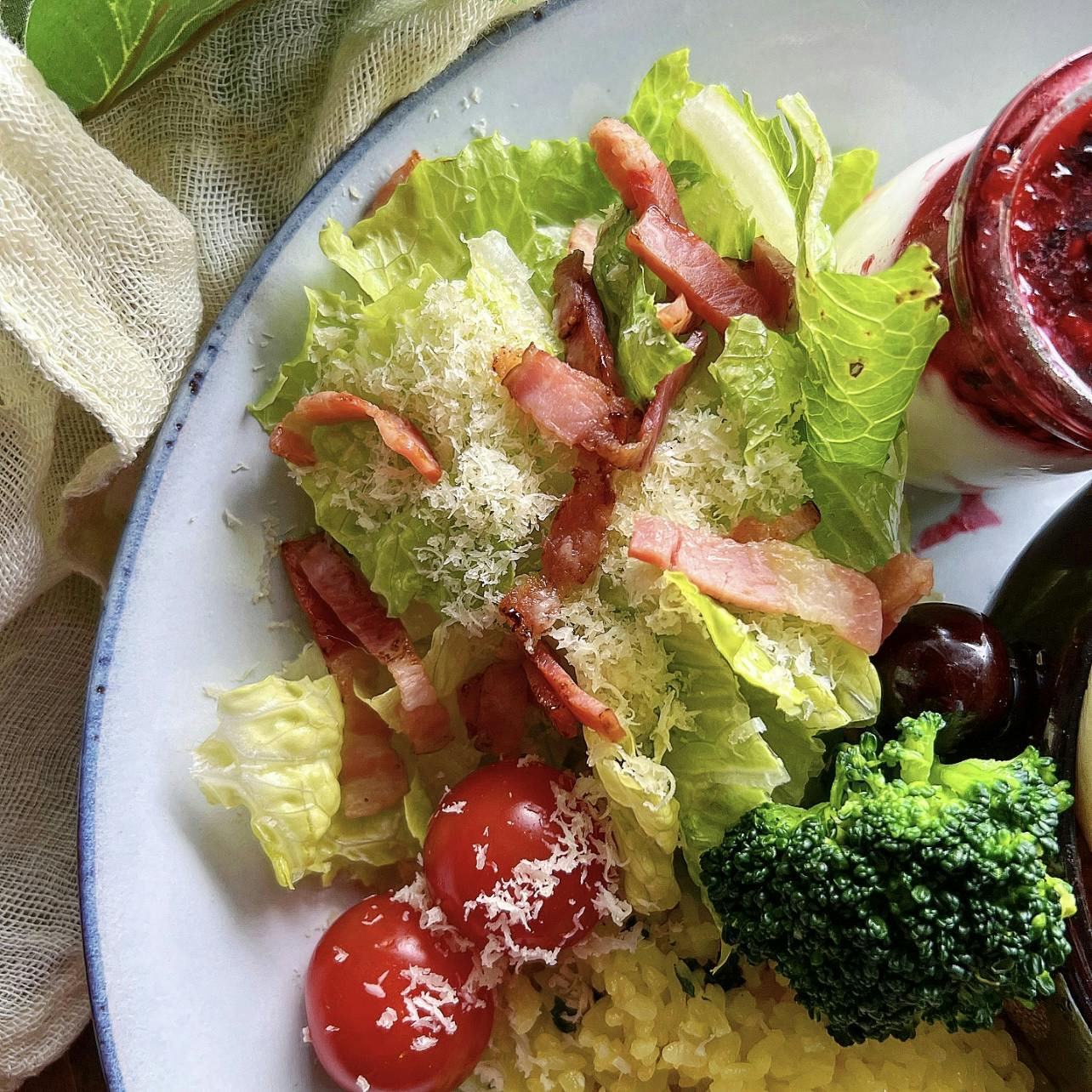 ❁ ピーマン入りチキンカレー ❁ ターメリックごはん ❁ ベーコンとチーズの彩りサラダ ❁ ミックスベリーヨーグルト ❁ ルイボスティー カレーは前日の残りにピーマンを追加。 カレーにピーマンは賛否両論ありそうですが我が家は夏はナス🍆やピーマン🫑を入れることも結構多いです🤗 これはこれで美味しいんですよ🤭