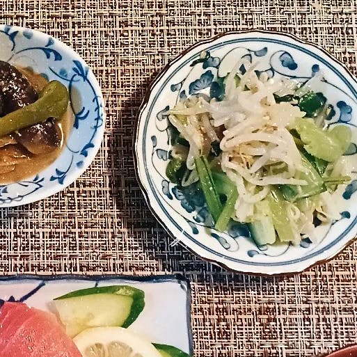 にぎり寿司 手羽中と大根煮物 茄子とピーマンの味噌炒め 小松菜ともやしナムル 味噌汁 忙しい日は買ってきたお寿司と作り置き副菜で🤭