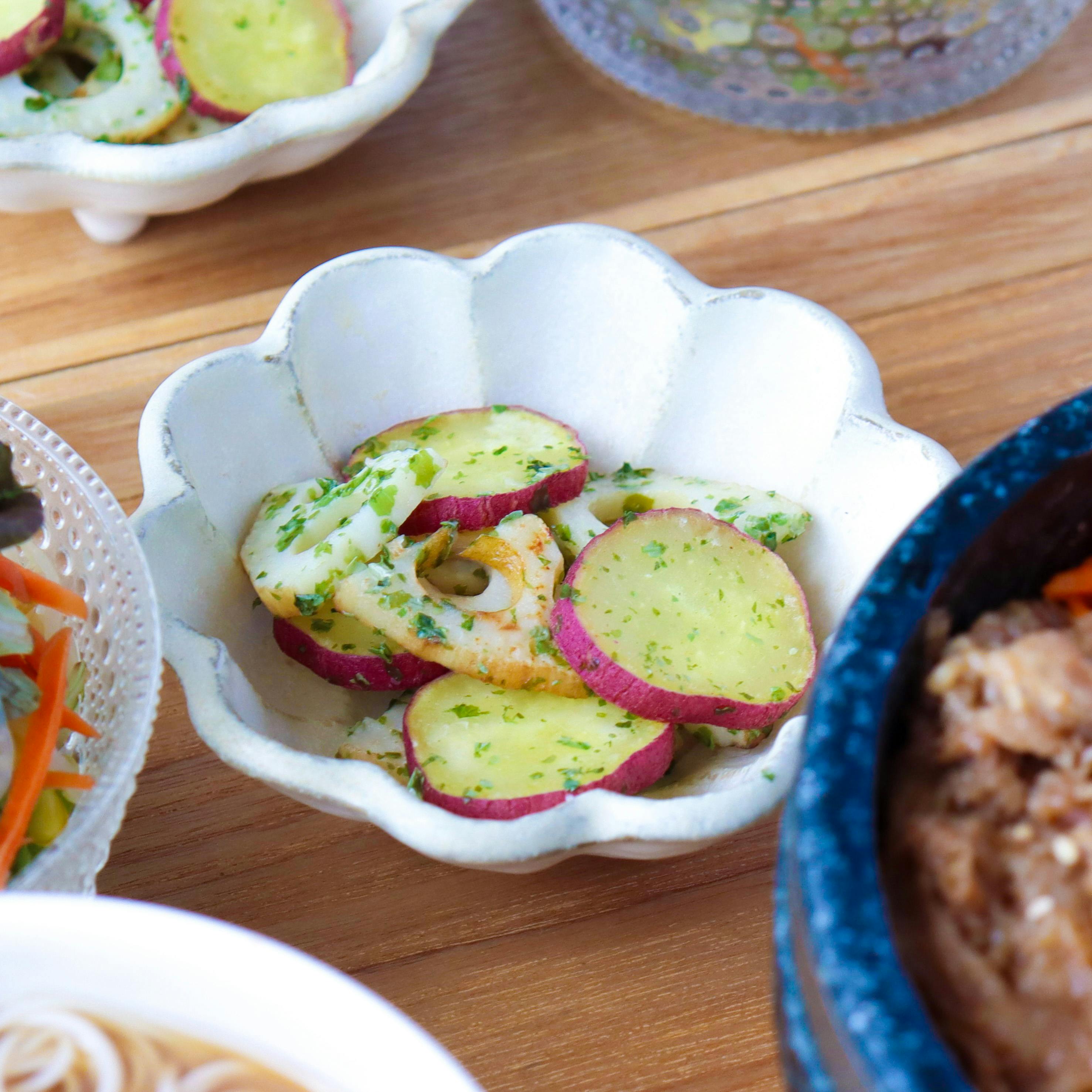 さつまいもと蓮根ののり塩炒め