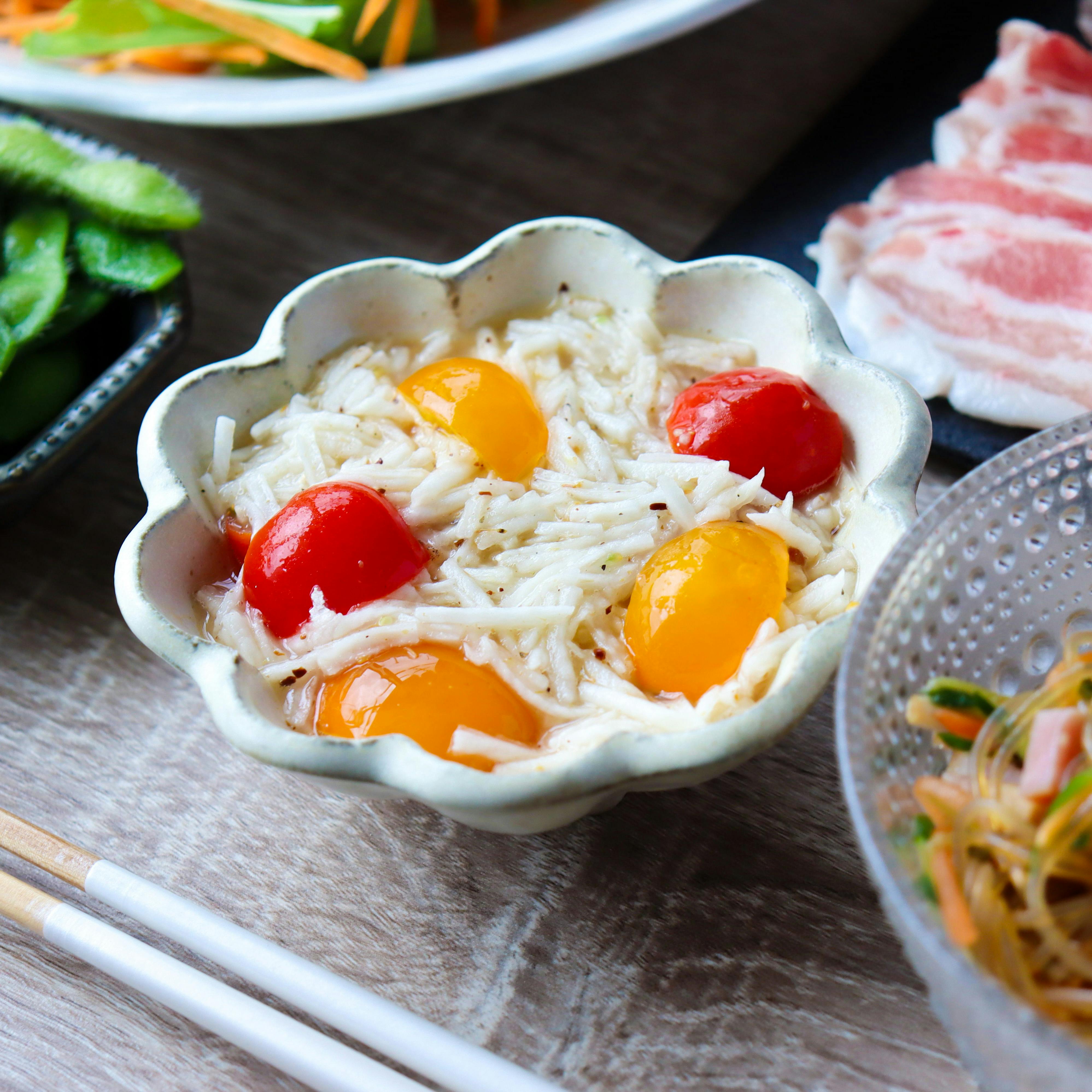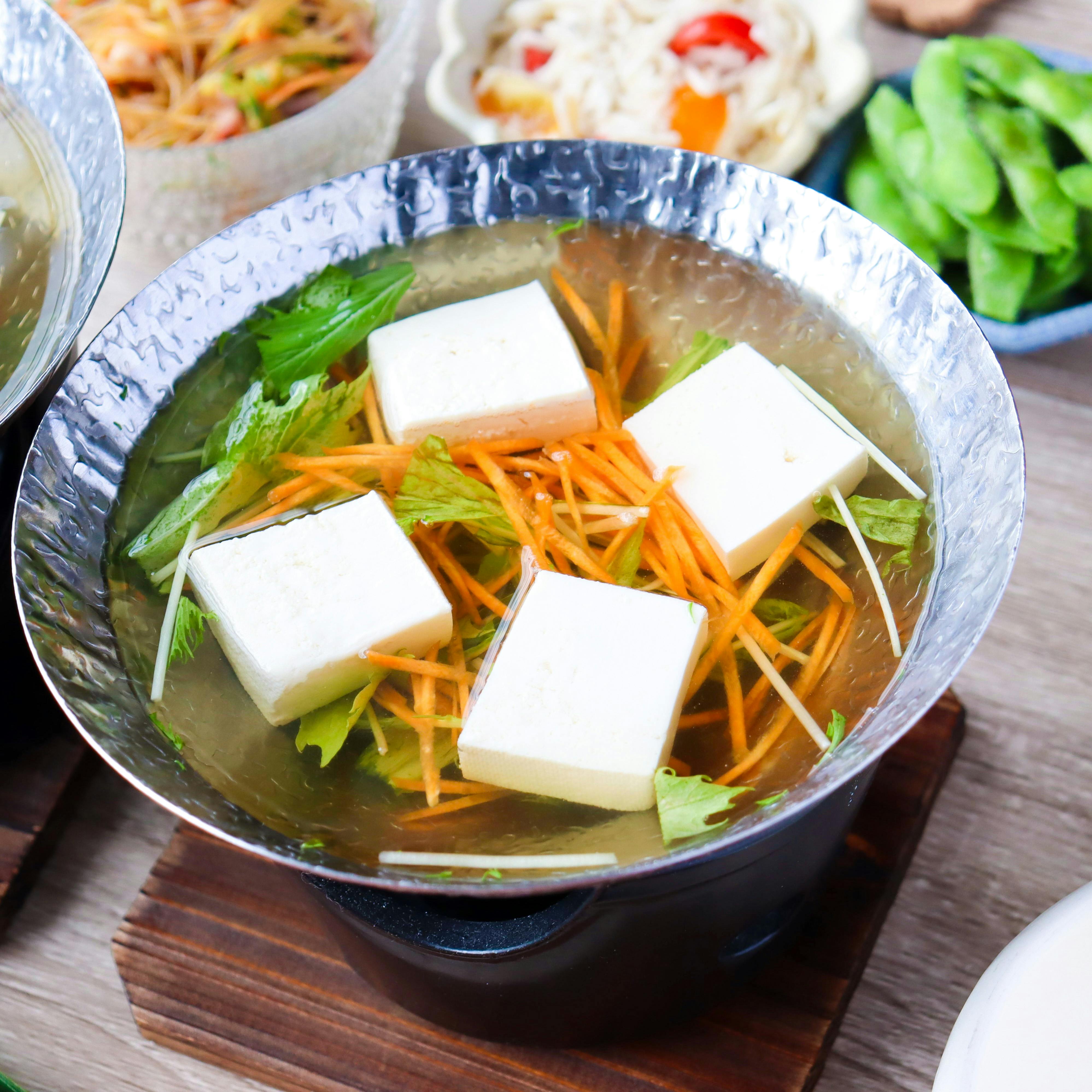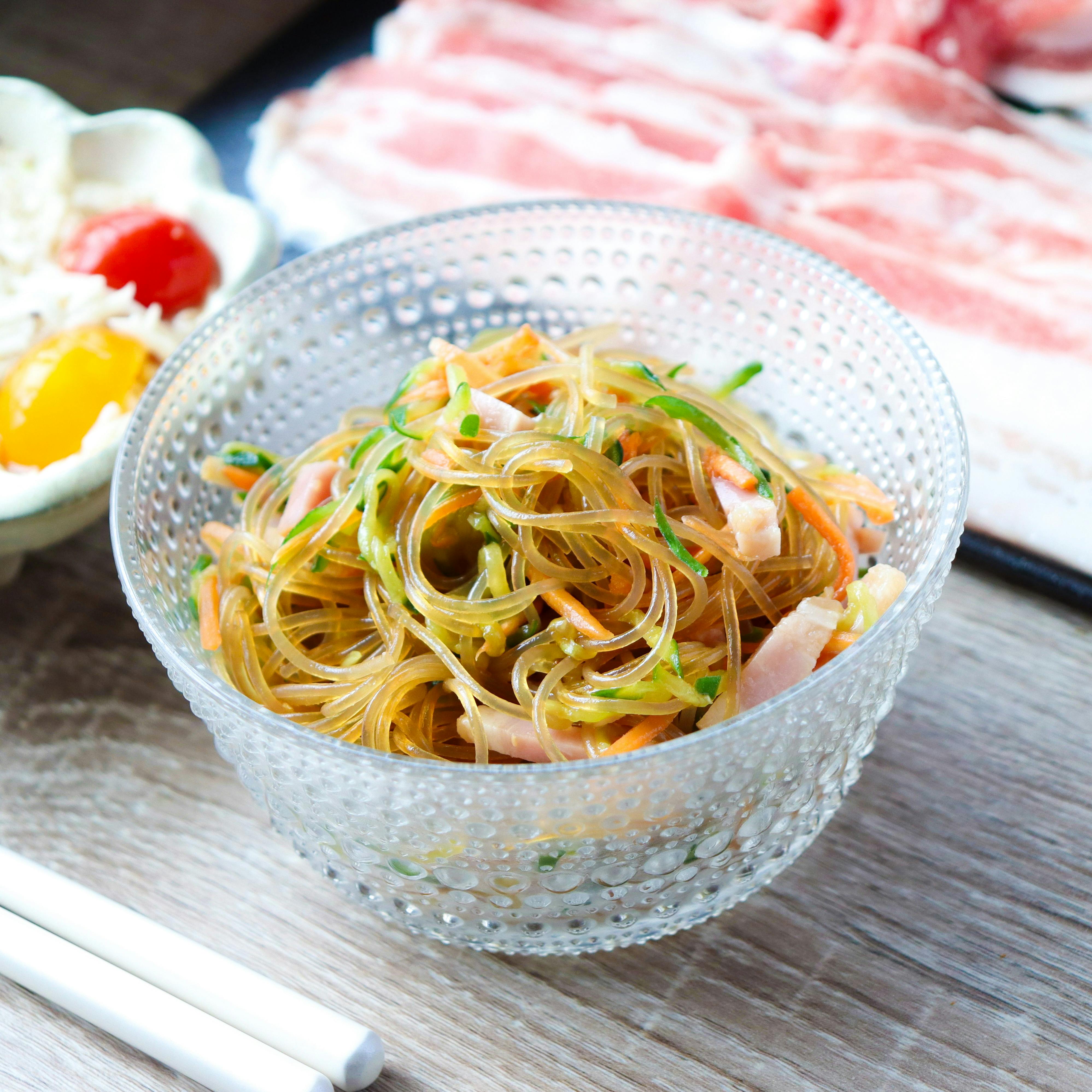 ꕤ 豚しゃぶ ꕤ 枝豆 ꕤ 長芋とミニトマトのだし和え ꕤ 春雨サラダ 今日はしゃぶしゃぶ。 水菜・人参・レタス・お豆腐と一緒に✨