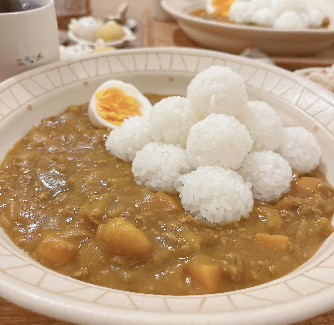 かぼちゃとひき肉のカレー甘くて美味しかったです😋 ちょっとだけお月見を意識しました🎑笑